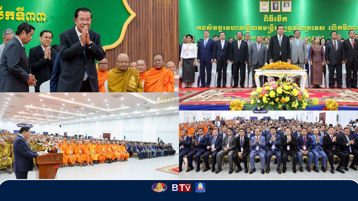 សម្តេចតេជោ ហ៊ុន សែន អញ្ជើញជាព្រះរាជតំណាងដ៏ខ្ពង់ខ្ពស់របស់ព្រះមហាក្សត្រ បើកអនុសំវច្ឆរមហាសន្និបាតមន្ត្រីសង្ឃទូទាំងប្រទេសលើកទី៣៣