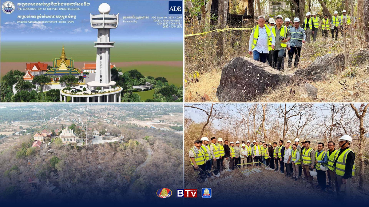 មន្រ្ដីជាន់ខ្ពស់ក្រសួងធនធានទឹក និងប្រតិភូ ADB ចុះពិនិត្យការចាប់ផ្ដើមការដ្ឋានសាងសង់ស្ថានីយរ៉ាដាតេជោសែនទី២ នៅភ្នំប្រសិទ្ធិ៍ ខណៈស្ថានីយរ៉ាដានេះនឹងដើរតួនាទីយ៉ាងសំខាន់បម្រើឱ្យការព្យាករធាតុអាកាស និងការប្រែប្រួលអាកាសធាតុ