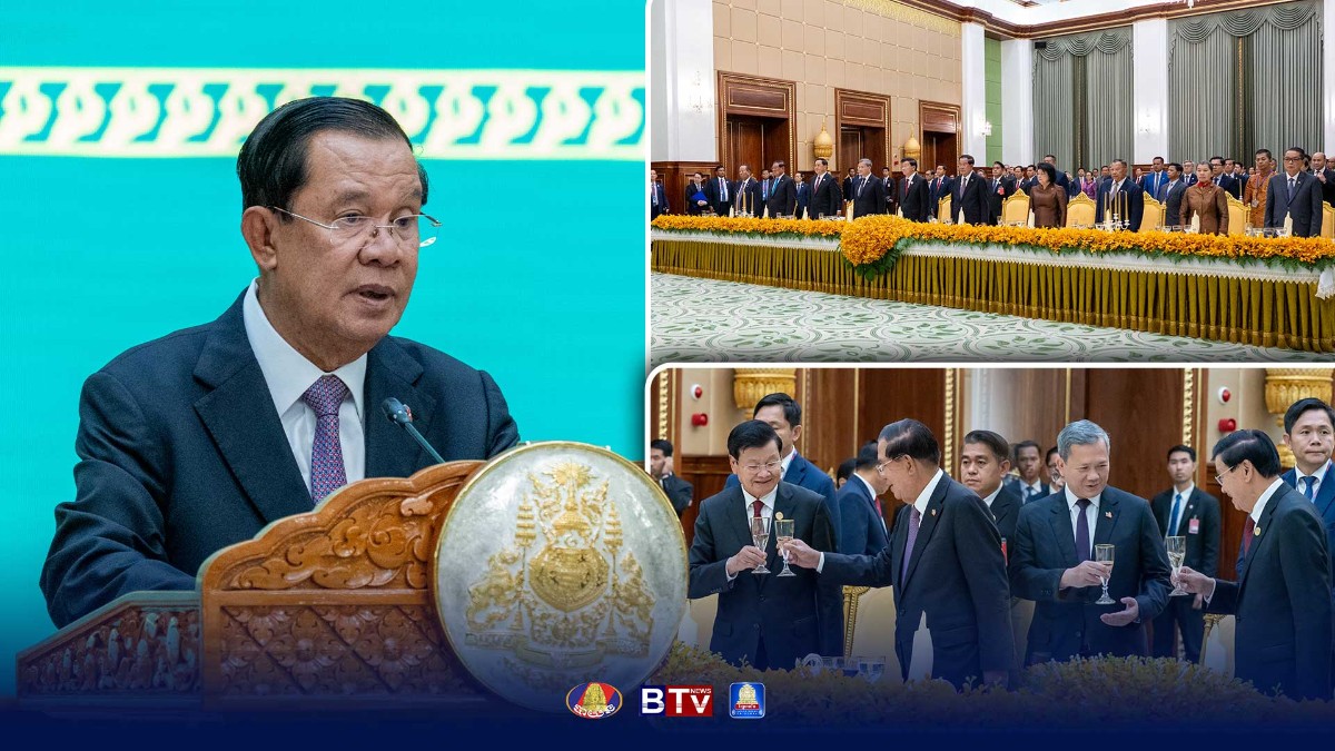 សម្តេចតេជោ ហ៊ុន សែន រៀបចំពិធីលៀងភោជនាហារផ្លូវរដ្ឋជូនឯកឧត្តម​បណ្ឌិត ថងលុន ស៊ីសូលីត (Thongloun Sisoulith) ក្នុងឱកាសដំណើរទស្សនកិច្ចផ្លូវរដ្ឋនៅកម្ពុជា