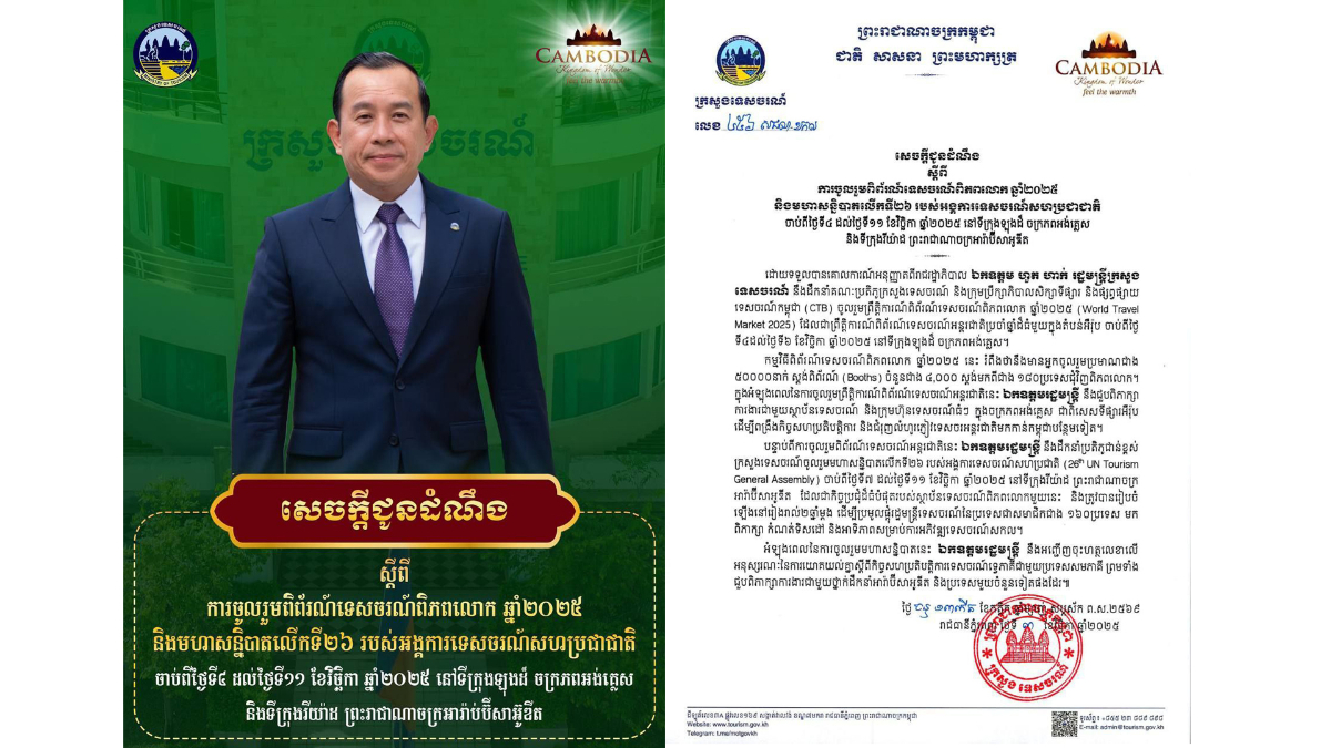 ដោយទទួលបានគោលការណ៍អនុញ្ញាតពីរាជរដ្ឋាភិបាល ឯកឧត្តម ហួត ហាក់ រដ្ឋមន្ត្រីក្រសួង ទេសចរណ៍ នឹងដឹកនាំគណៈប្រតិភូក្រសួងទេសចរណ៍ និងក្រុមប្រឹក្សាភិបាលសិក្សាទីផ្សារ និងផ្សព្វផ្សាយ ទេសចរណ៍កម្ពុជា (CTB) ចូលរួមព្រឹត្តិការណ៍ពិព័រណ៍ទេសចរណ៍ពិភពលោក ឆ្នាំ២០២៥ (World Travel Market 2025) ដែលជាព្រឹត្តិការណ៍ពិព័រណ៍ទេសចរណ៍អន្តរជាតិប្រចាំឆ្នាំដ៏ធំមួយក្នុងតំបន់អឺរ៉ុប ចាប់ពីថ្ងៃ ទី៤ ដល់ ថ្ងៃទី៦ ខែវិច្ឆិកា ឆ្នាំ២០២៥ នៅទីក្រុងឡុងដ៏ ចក្រភពអង់គ្លេស។យោងតាម សេចក្តីជូនដំណឹង របស់ ក្រសួងទេសចរណ៍ នៅថ្ងៃទី៣ ខែវិច្ឆិកា ឆ្នាំ២០២៥ នេះ បានបង្ហាញថា កម្មវិធីពិព័រណ៍ទេសចរណ៍ពិភពលោក ឆ្នាំ២០២៥ នេះ រំពឹងថា នឹងមានអ្នកចូលរួមប្រមាណជាង ៥០ ០០០នាក់ ស្តង់ពិព័រណ៍ (Booths) ចំនួនជាង ៤ ០០០ ស្តង់មកពីជាង ១៨០ប្រទេសជុំវិញពិភពលោក។ ក្នុងអំឡុងពេលនៃការចូលរួមព្រឹត្តិការណ៍ពិព័រណ៍ទេសចរណ៍អន្តរជាតិនេះ ឯកឧត្តមរដ្ឋមន្ត្រី នឹងជួបពិភាក្សា ការងារជាមួយស្ថាប័នទេសចរណ៍ និងក្រុមហ៊ុនទេសចរណ៍ធំៗ ក្នុងចក្រភពអង់គ្លេស ជាពិសេសទីផ្សារអឺរ៉ុប ដើម្បីពង្រឹងកិច្ចសហប្រតិបត្តិការ និងជំរុញលំហូរភ្ញៀវទេសចរអន្តរជាតិមកកាន់កម្ពុជាបន្ថែមទៀត។បន្ទាប់ពីការចូលរួមពិព័រណ៍ទេសចរណ៍អន្តរជាតិនេះ ឯកឧត្តមរដ្ឋមន្ត្រី នឹងដឹកនាំប្រតិភូជាន់ខ្ពស់ ក្រសួងទេសចរណ៍ចូលរួមមហាសន្និបាតលើកទី២៦ របស់អង្គការទេសចរណ៍សហប្រជាតិ (260 UN Tourism General Assembly) ចាប់ពីថ្ងៃទី៧ ដល់ថ្ងៃទី១១ ខែវិច្ឆិកា ឆ្នាំ២០២៥ នៅទីក្រុងរីយ៉ាដ ព្រះរាជាណាចក្រ អារ៉ាប៊ីសាអូឌីត ដែលជាកិច្ចប្រជុំដ៏ធំបំផុតរបស់ស្ថាប័នទេសចរណ៍ពិភពលោកមួយនេះ និងត្រូវបានរៀបចំឡើងនៅរៀងរាល់ ២ឆ្នាំម្ដង ដើម្បីប្រមូលផ្ដុំរដ្ឋមន្ត្រីទេសចរណ៍នៃប្រទេសជាសមាជិកជាង ១៦០ប្រទេស មកពិភាក្សា កំណត់ទិសដៅ និងអាទិភាពសម្រាប់ការអភិវឌ្ឍទេសចរណ៍សកល។អំឡុងពេលនៃការចូលរួមមហាសន្និបាតនេះ ឯកឧត្តមរដ្ឋមន្រ្តី នឹងអញ្ជើញចុះហត្ថលេខាលើ អនុស្សរណៈនៃការយោគយល់គ្នា ស្តីពី កិច្ចសហប្រតិបត្តិការទេសចរណ៍ទ្វេភាគីជាមួយប្រទេសសមភាគី ព្រមទាំង ជួបពិភាក្សាការងារជាមួយថ្នាក់ដឹកនាំអារ៉ាប៊ីសាអូឌីត និងប្រទេសមួយចំនួនទៀតផងដែរ៕