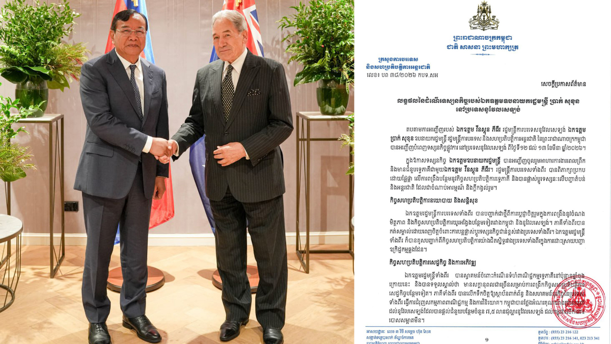 ក្រសួងការបរទេសលទ្ធផលនៃដំណើរទស្សនកិច្ចរបស់ឯកឧត្តមឧបនាយករដ្ឋមន្ត្រី ប្រាក់ សុខុន នៅប្រទេសនូវែលសេឡង់