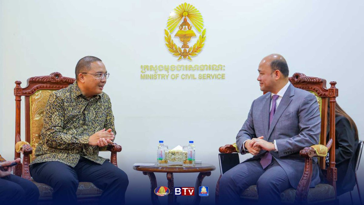 ភ្នំពេញ៖ នៅព្រឹកថ្ងៃទី១៩ ខែមករា ឆ្នាំ២០២៦នេះ ឯកឧត្តម ហ៊ុន ម៉ានី ឧបនាយករដ្ឋមន្ត្រី រដ្ឋមន្ត្រីក្រសួងមុខងារសាធារណៈ ឯកឧត្តមបណ្ឌិត Santo Darmosumarto ឯកអគ្គរដ្ឋទូតសាធារណរដ្ឋឥណ្ឌូណេស៊ីប្រចាំព្រះរាជាណាចក្រកម្ពុជាជិតបញ្ចប់អាណត្តិបេសកកម្មនៅកម្ពុជា បានជួបសំណេះសំណាល និងពិភាក្សាការងារ នាខណៈដែល ឯកឧត្តម ជិតនឹងបញ្ចប់អាណត្តិបេសកកម្មការទូតនៅកម្ពុជា.ក្នុងជំនួបនេះ ឯកឧត្តម ហ៊ុន ម៉ានី និង ឯកឧត្តម ឯកអគ្គរដ្ឋទូតឥណ្ឌូណេស៊ី បានពិភាក្សា និងផ្លាស់ប្តូរយោបល់លើកិច្ចសហប្រតិបត្តិការ នៅក្នុងក្របខណ្ឌមុខងារសាធារណៈ និងយុវជន ក៏ដូចជាការពង្រឹងទំនាក់ទំនងទ្វេភាគីដ៏យូរអង្វែង និងជិតស្និទ្ធរវាងប្រទេសយើងទាំងពីរឆ្ពោះទៅអនាគត៕