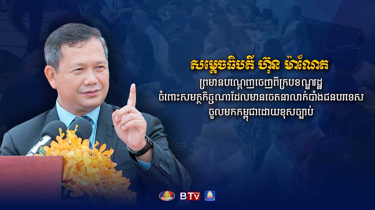 សម្តេចធិបតី ហ៊ុន ម៉ាណែត ព្រមានបណ្តេញចេញពីក្របខណ្ឌរដ្ឋចំពោះសមត្ថកិច្ចណា ដែលមានចេតនាលាក់បាំងជនបរទេសចូលមកកម្ពុជាដោយខុសច្បាប់