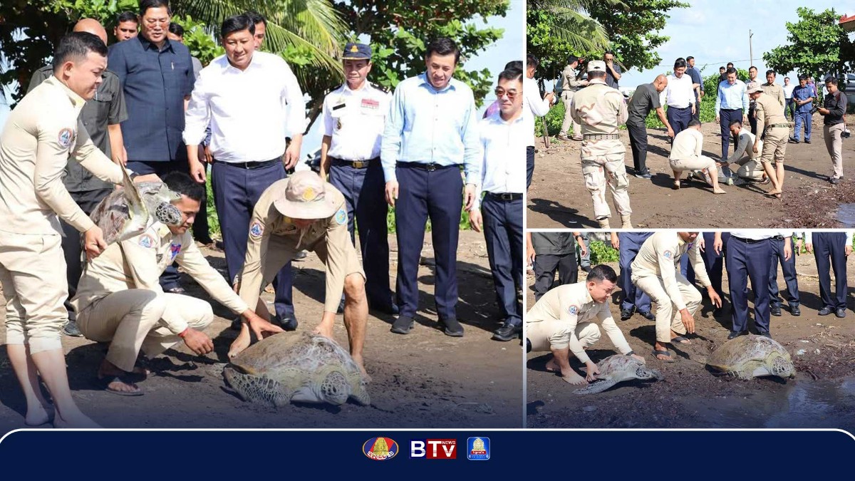 អណ្តើកសមុទ្រ២ក្បាល ត្រូវបានលែងចូលសមុទ្រវិញ ក្រោយទទួលបានពីអ្នកនេសាទ