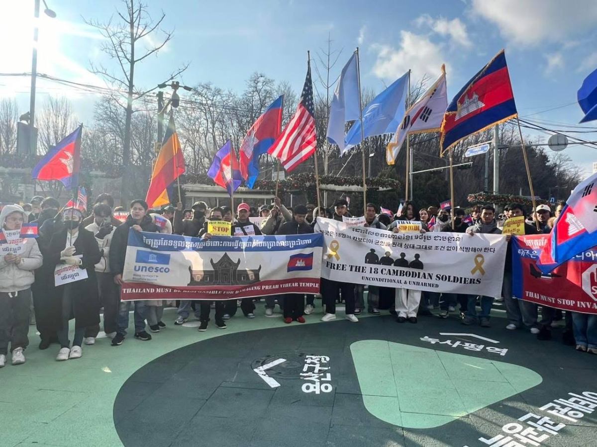 សហគមន៍ខ្មែរនៅកូរ៉េខាងត្បូងជាង ២ពាន់នាក់​ប្រមូលផ្តុំ​គ្នា​ធ្វើ​បាតុកម្ម​សម្តែង​មតិ​ថ្កោល​ទោស​ការ​ឈ្លាន​ពាន​យ៉ាង​សាហាវព្រៃផ្សៃរបស់កងទ័ពថៃមកលើដែនអធិបតេយ្យកម្ពុជា