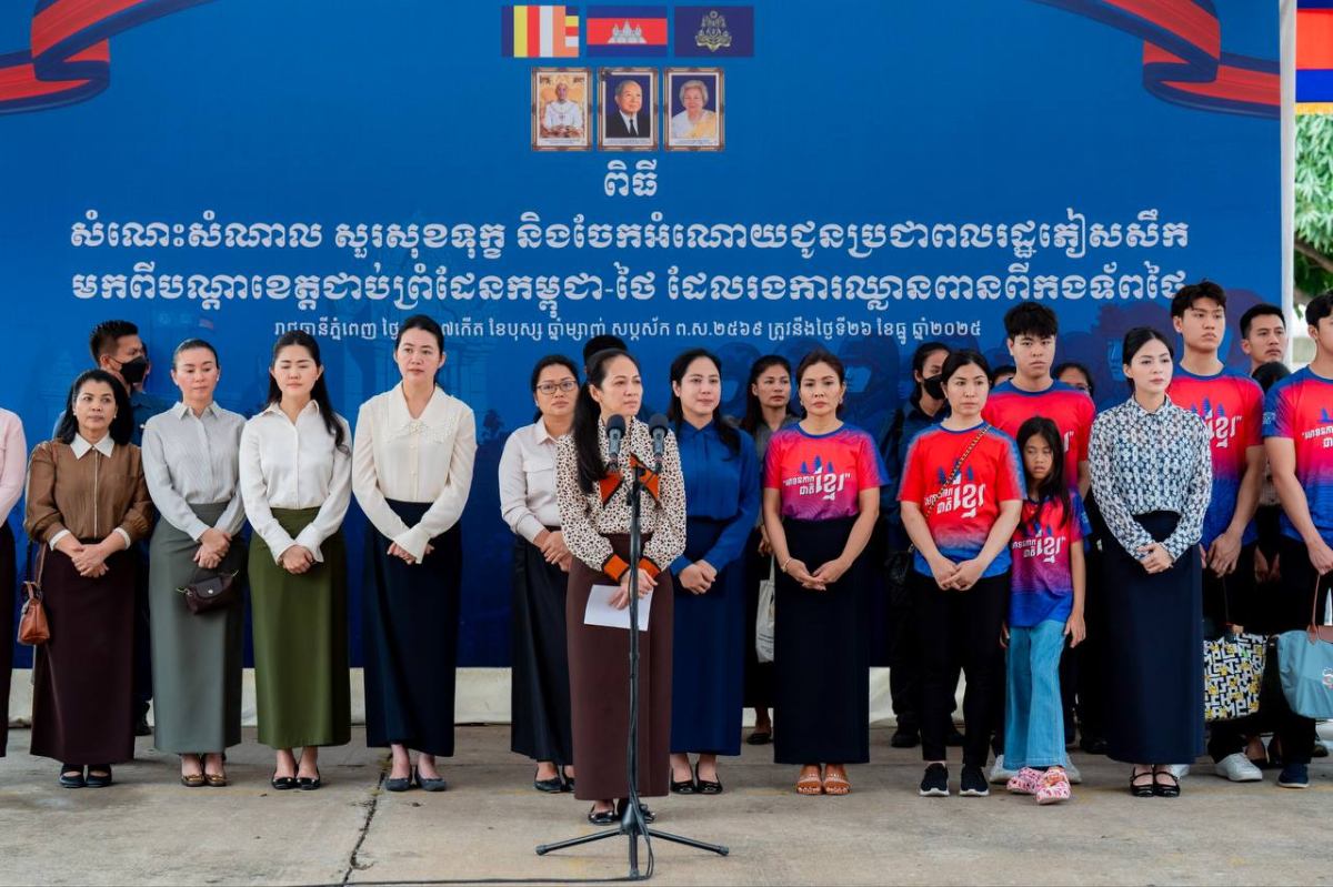 លោកជំទាវបណ្ឌិត ពេជ ចន្ទមុន្នី ហ៊ុនម៉ាណែត អញ្ជើញជួបសំណេះសំណាល សួរសុខទុក្ខ និងចែកអំណោយជូនពលរដ្ឋភៀសសឹក មកពីបណ្តាខេត្តជាប់ព្រំដែនកម្ពុជា-ថៃ