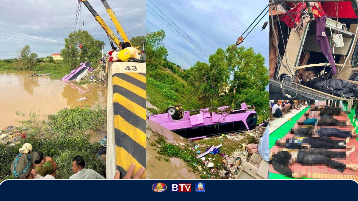 កំពង់ធំ៖ រថយន្ដក្រុងដឹកអ្នកដំណើរពេលយប់មួយគ្រឿង បានបើកទៅបុកបង្កាន់ដៃស្ពាន ហើយក្រឡាប់ធ្លាក់ចូលទឹកនៅវេលាម៉ោងប្រមាណ ៤ទៀបភ្លឺ ឈានចូលថ្ងៃទី២០ ខែវិច្ឆិកា ឆ្នាំ២០២៥ ចំណុចស្ពានអូរប្រាសាទ ស្ថិតក្នុងភូមិជ័យជំនះ ឃុំកកោះ ស្រុកសន្ទុក ខេត្តកំពង់ធំ។លោក ឡុង គីសឹង អភិបាលស្រុកសន្ទុក បានឱ្យដឹងថា សមត្ថកិច្ចបានស្ទួចយករថយន្តចេញពីទឹក និងរកឃើញមនុស្ស ១៣នាក់បានស្លាប់ និងមានអ្នករងរបួស២៤នាក់។តាមប្រភពព័ត៌មានឱ្យដឹងថា រថយន្តក្រុងដឹកអ្នកដំណើរនេះផ្ទុកមនុស្ស ៣៧នាក់ ធ្វើដំណើរចេញពីខេត្តសៀមរាប ឆ្ពោះទិសដៅរាជធានីភ្នំពេញ។ ពេលមកដល់កន្លែងកើតហេតុអ្នកបើកអាចស្ថិតក្នុងស្ថានភាពងងុយ ទើបរេចង្កូតទៅបុកបង្កាន់ដៃស្ពាន៕ អត្ថបទ ៖ វ៉ាន់ដា