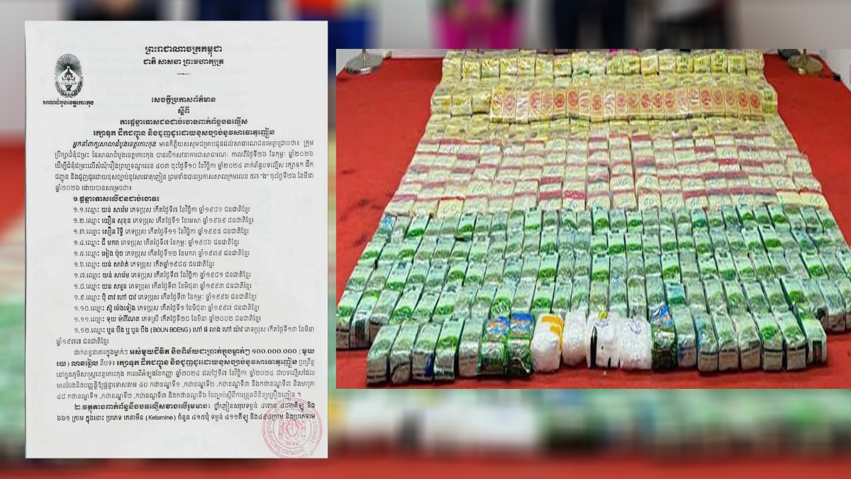 ករណីថ្នាំញៀនជាង ៤តោន : ផ្តន្ទាទោសជនជាប់ចោទ ១២នាក់ ដាក់ពន្ធនាគារអស់មួយជីវិត