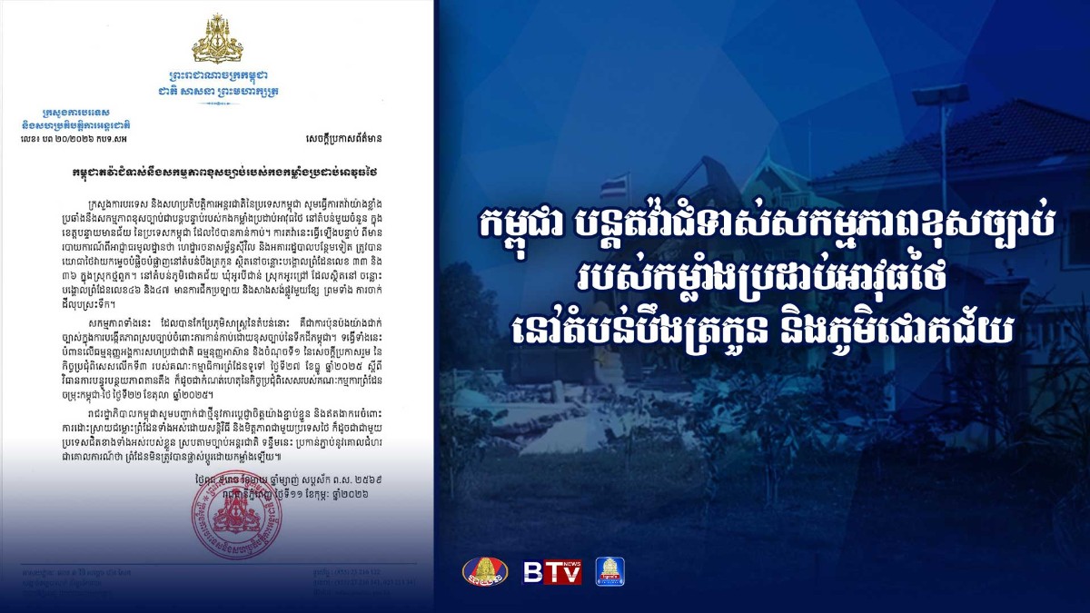 កម្ពុជា បន្តតវ៉ាជំទាស់សកម្មភាពខុសច្បាប់ របស់កម្លាំងប្រដាប់អាវុធថៃ នៅតំបន់បឹងត្រកួន និង​ភូមិជោគជ័យ
