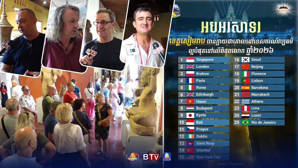 ទេសចរអន្តរជាតិយល់ស្របចំពោះចំណាត់ថ្នាក់ខេត្តសៀមរាបជាគោលដៅវប្បធម៌ល្អបំផុតសម្រាប់ទស្សនា