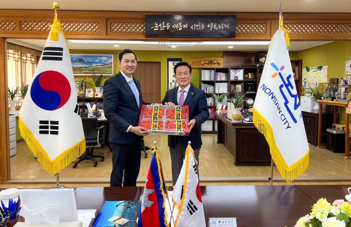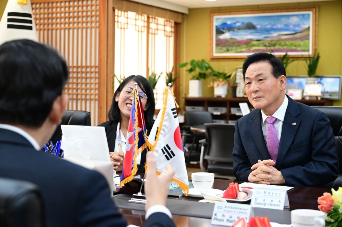 ភ្នំពេញ៖ ឯកឧត្តម ឃួន ផុនរតនៈ ឯកអគ្គរាជទូតកម្ពុជាប្រចាំសាធារណរដ្ឋកូរ៉េ និងសហការី បាន​ជួប​សំណេះសំណាលនិងពិភាក្សាការងារជាមួយលោក Baek Seong Hyeon អភិបាល​ក្រុង​នន់​សាន​ នៅ​សាលាក្រុងនន់សាន់ ក្នុងខេត្តឈុងឆុងណាំដូ ដើម្បីពង្រឹងកិច្ចសហប្រតិបត្តិការ ផ្ដល់​ព័ត៌មាន​ដល់​គ្នា​ទៅវិញទៅមក​ជួយដល់ពលករខ្មែរ ដែលកំពុងបម្រើការងារក្នុងក្រុងមួយនេះ។