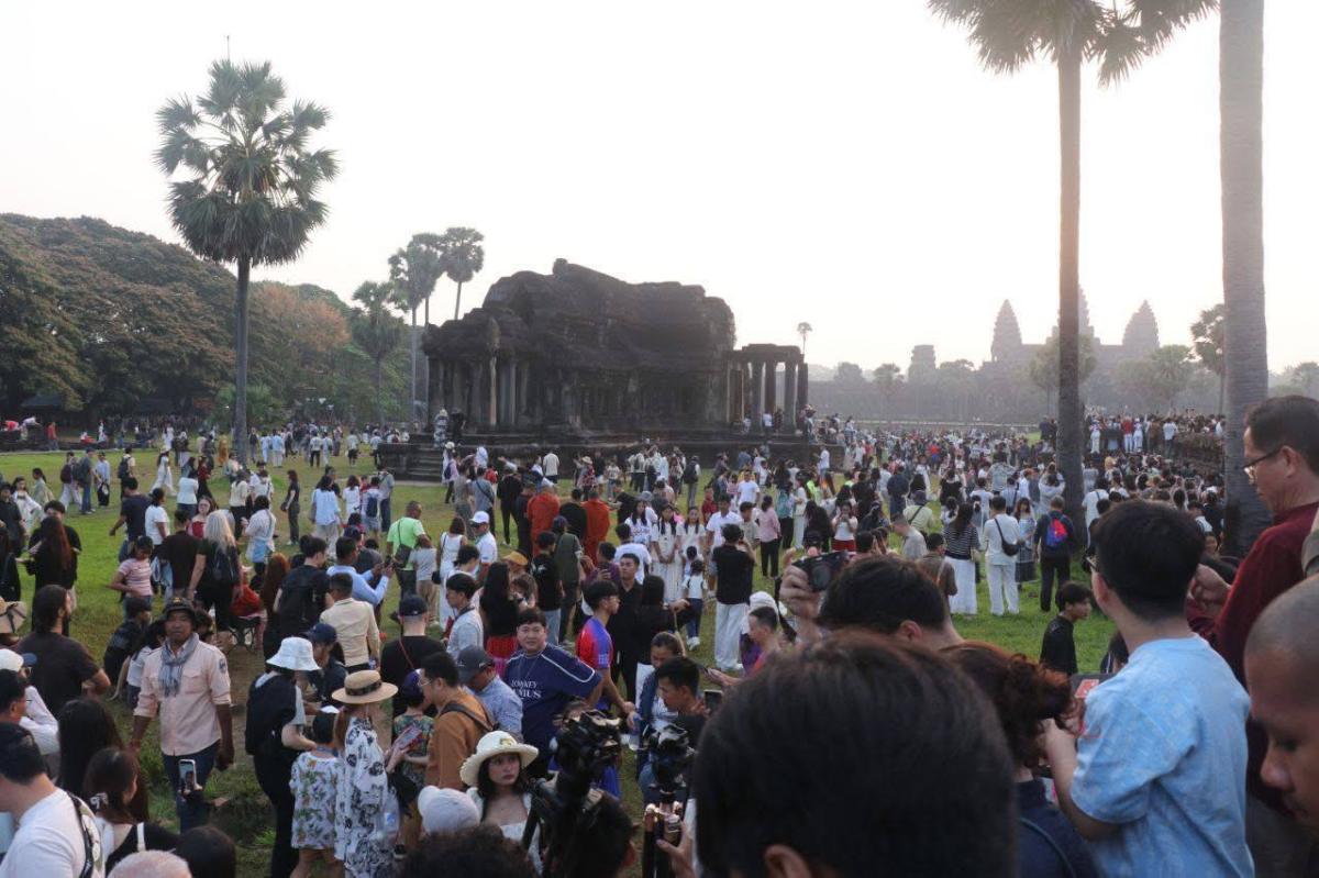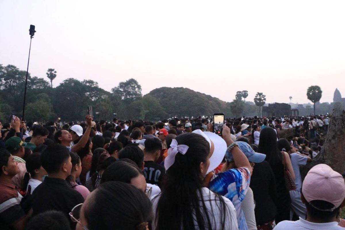 សមរាត្រីអង្គរ! ទេសចរជិត៤ម៉ឺននាក់ មកផ្ដិតយកទិដ្ឋភាពថ្ងៃរះចំកំពូលប្រាសាទ