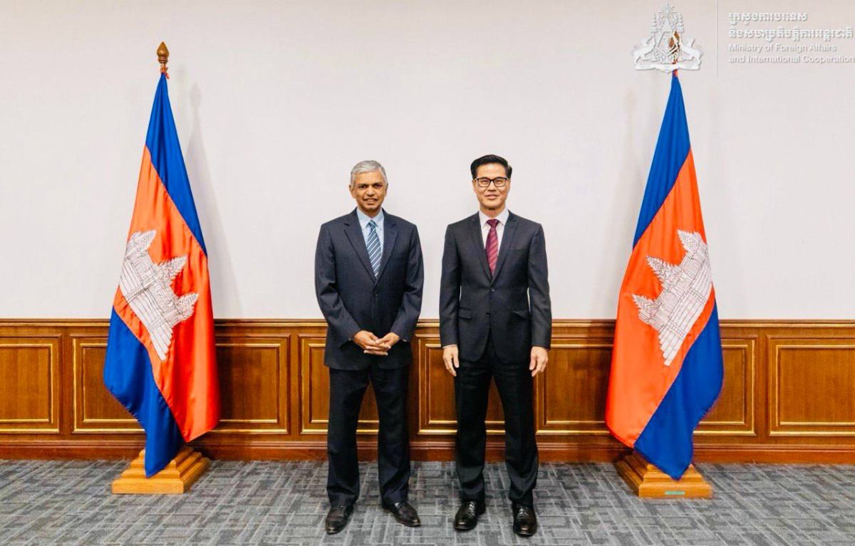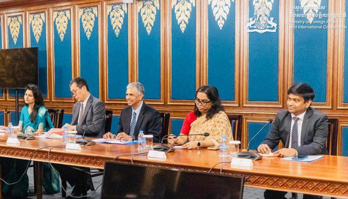 ឯកឧត្តមបណ្ឌិត អ៊ុន ឃាង រដ្ឋលេខាធិការ នៃក្រសួងការបរទេស និងសហប្រតិបត្តិការអន្តរជាតិ បានជួបពិភាក្សាការងារជាមួយ ឯកឧត្ដម Shri P. Kumaran រដ្ឋលេខាធិការទទួលបន្ទុកតំបន់ខាងកើត នៃក្រសួងការបរទេសឥណ្ឌា នៅទីស្តីការក្រសួង នៅព្រឹកថ្ងៃទី២៣ ខែមីនា ឆ្នាំ២០២៦ ។