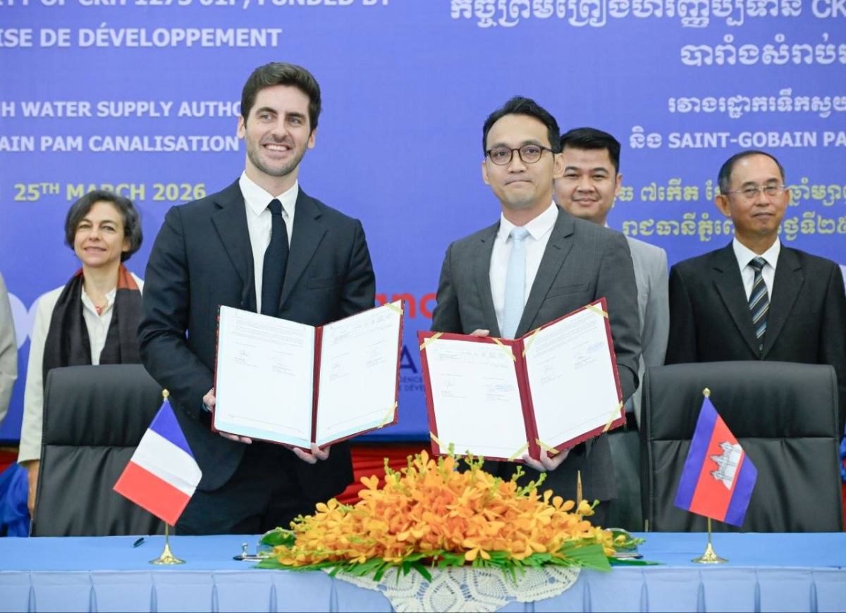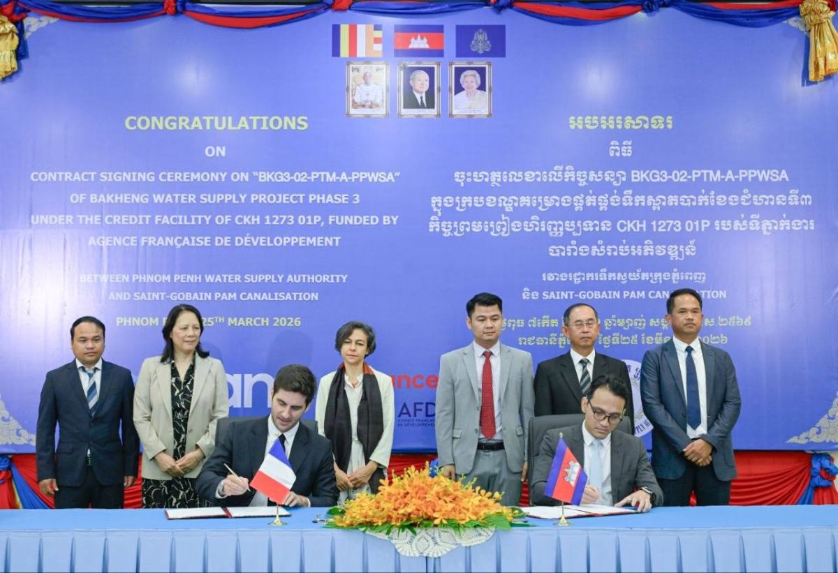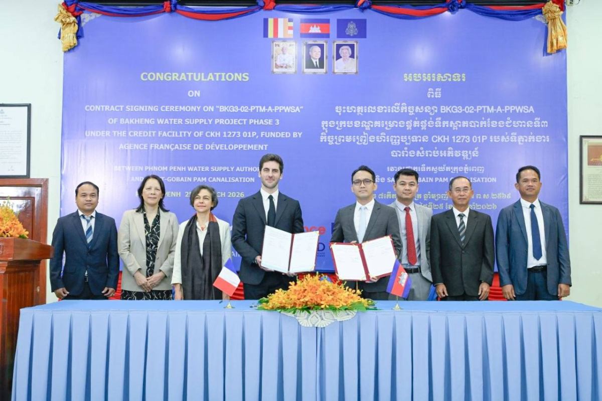 រដ្ឋាករទឹកស្វយ័តក្រុងភ្នំពេញ និងក្រុមហ៊ុន SAINT-GOBAIN PAM CANALISATION ចុះហត្ថលេខាផ្គត់ផ្គង់បំពង់ដែក និងសម្ភារៈ តភ្ជាប់ដែក សម្រាប់គម្រោងផ្គត់ផ្គង់ទឹកស្អាតបាក់ខែងជំហានទី៣ មានទឹកប្រាក់សរុបជាង ២១ លានអឺរ៉ូ ក្រោមការផ្តល់ហិរញ្ញប្បទានពីទីភ្នាក់ងារអភិវឌ្ឍន៍បារាំង (AFD)។