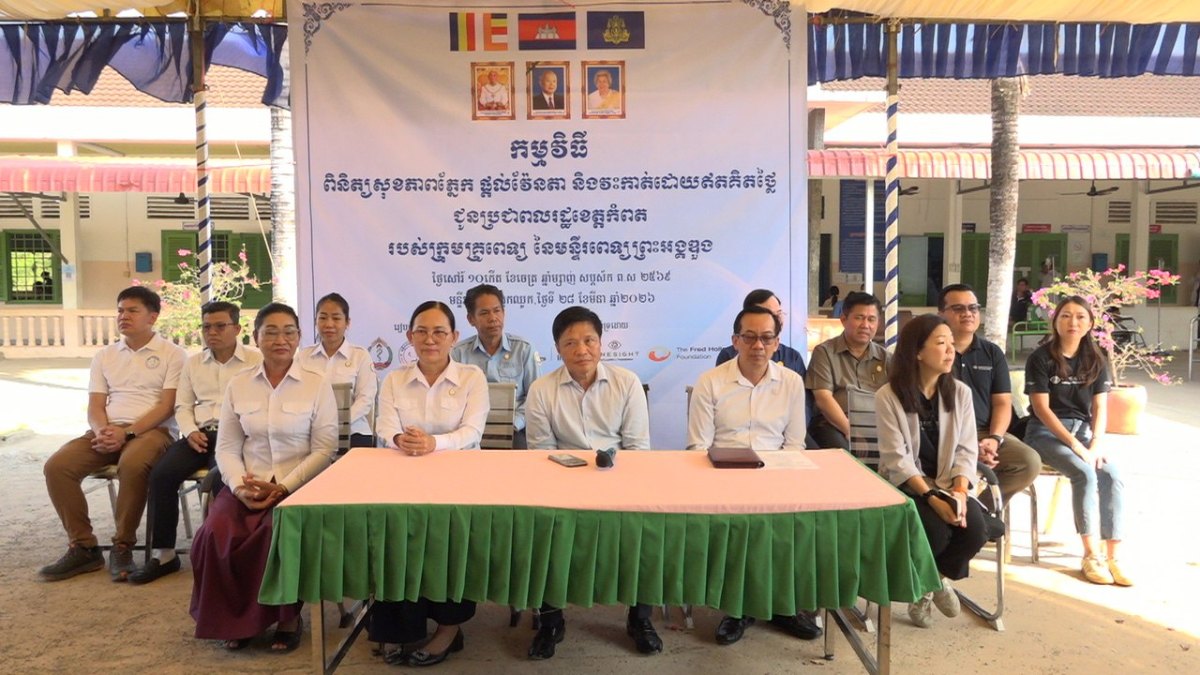 ពិធីនេះបានធ្វើឡើងនាព្រឹកថ្ងៃទី២៨ ខែមីនា ឆ្នាំ២០២៦នេះ នៅក្នុងមនី្ទរពេទ្យបង្អែកឈូក ខេត្តកំពត ក្រោមអធិបតីភាព ឯកឧត្តមសាស្ត្រាចារ្យ រង លូ លីឃាង ទីប្រឹក្សាក្រសួងសុខាភិបាល និងជានាយកមន្ទីរពេទ្យព្រះអង្គឌួង លោកជំទាវ យូ សុគន្ធ ប្រធានមន្ទីរសុខាភិបាល នៃរដ្ឋបាលខេត្តកំពត លោក បាក់ តូក្យូ នាយកអង្គការ Fred Hollows Foundation Cambodia និងលោកស្រី ខូហ៍ ផាត់ទ្រីសា នាយិកាប្រចាំអាស៊ីអាគ្នេយ៍ ជប៉ុន និងកូរ៉េ នៃអង្គការ One Sight Essilor Luxottica លោក លោកស្រីក្រុមគ្រូពេទ្យ និងបងប្អូនប្រជាពលរដ្ឋ។