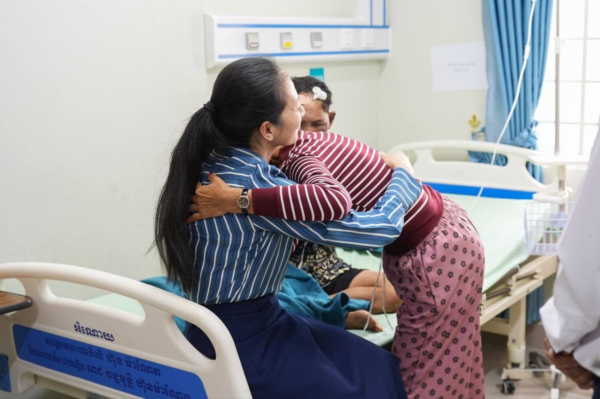 រាជធានីភ្នំពេញ៖ រសៀលថ្ងៃអាទិត្យ ទី២៩ ខែមីនា ឆ្នាំ២០២៦នេះ ដោយក្ដីបារម្មណ៍ គិតគូរ ខ្វាយខ្វល់អំពីសុខទុក្ខវីរកងទ័ពដែលកំពុងសម្រាកព្យាបាលជំងឺ «លោកជំទាវបណ្ឌិត ពេជ ចន្ទមុន្នី ហ៊ុនម៉ាណែត» អនុប្រធានក្រុមប្រឹក្សាភិបាលសមាគមគ្រូពេទ្យស្ម័គ្រចិត្តយុវជនសម្តេចតេជោ (TYDA) អញ្ជើញសួរសុខទុក្ខដោយផ្ទាល់ដល់ ព្រិន្ទបាលឯក "ជិន ថុល" អាយុ ៤៦ឆ្នាំ និងនាយចំណង់ "នៅ សុខហេង" អាយុ ៤៧ឆ្នាំ ដោយវីរកងទ័ពទាំងពីរបានជួបគ្រោះថ្នាក់ក្នុងអំឡុងពេលបំពេញការងារ រួចត្រូវបានបញ្ជូនមកព្យាបាលជាបន្ទាន់នៅមន្ទីរពេទ្យមិត្តភាពខ្មែរ-សូវៀត រាជធានីភ្នំពេញ។