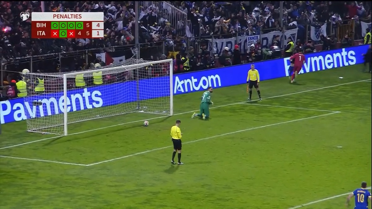 ក្រុមជើងឯកពិភពលោក ៤ សម័យអ៊ីតាលី ជាថ្មីម្តងទៀតបានខកខានកៅអីបាល់ទាត់ពិភពលោក ៣ ព្រឹត្តិការណ៍ជាប់គ្នា បន្ទាប់ពីបរាជ័យទល់នឹងបូស្នៀដោយបាល់ ១១ ម៉ែត្រកាត់សេចក្តីនៃវគ្គ Play-Off ផ្តាច់ព្រ័ត្រ។