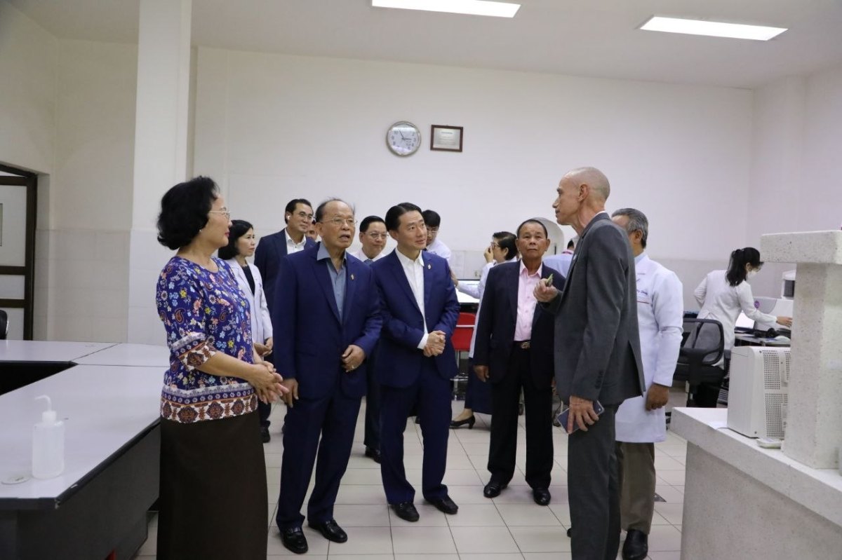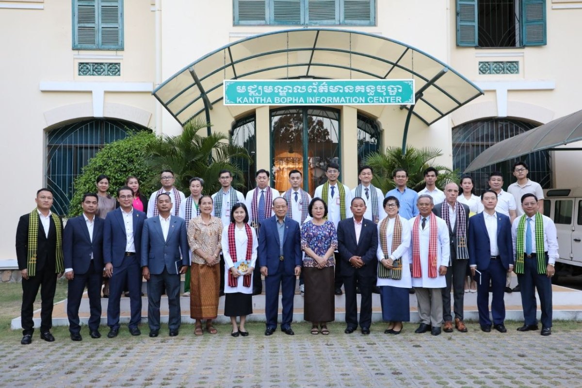 គណៈប្រតិភូទទួលស្វាគមន៍ដោយឯកឧត្តមវេជ្ជបណ្ឌិត សុខ ស្រ៊ុន ទីប្រឹក្សាក្រសួងសុខាភិបាល និងជាប្រធាននាយកដ្ឋានមន្ទីរពេទ្យ លោកវេជ្ជបណ្ឌិត Denis Lauren អគ្គនាយកមន្ទីរពេទ្យគន្ធបុប្ផា លោកសាស្ត្រាចារ្យ គីង សង់ទី ប្រធានមន្ទីរពេទ្យគន្ធបុប្ផា។