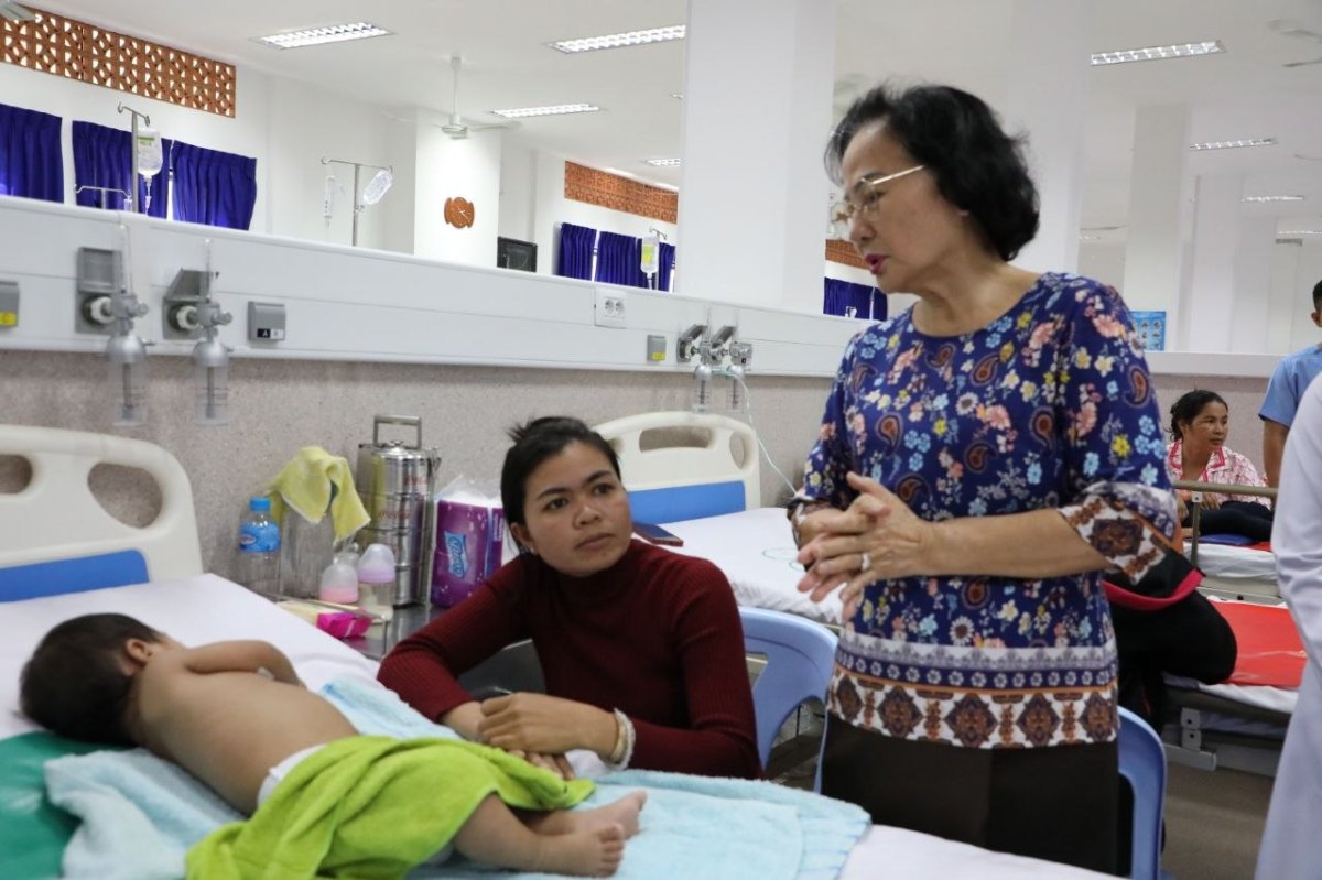 ក្រោយពីបានស្តាប់របាយការណ៍របស់លោកប្រធានមន្ទីរពេទ្យរួចមក លោកជំទាវ ឡោក ខេង ប្រធានគណ:ប្រតិភូ បានធ្វើការកោតសរសើរនិងវាយតំលៃខ្ពស់ចំពោះការខិតខំប្រឹងប្រែងរបស់មន្ទីរពេទ្យដែលបានយកចិត្តទុកដាក់បំពេញភារកិច្ចដោយបេះដូងក្នុងការព្យាបាល និងជួយសង្គ្រោះអាយុជីវិតដល់ទារក និងកុមារតូចៗ ជាពិសេសគឺជំងឺបេះដូងពីកំណើត និង ជំងឺមហារីក មានការយកចិត្តទុកដាក់ក្នុងព្យាបាលប្រកបដោយក្រមសីលធម៌វិជ្ជាជីវ:ក្នុងនាមជាកងទ័ពអាវស។