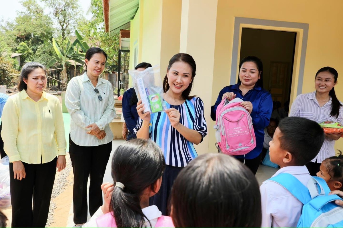 ជាមួយគ្នានោះ លោកជំទាវក៏បានចែកកាតាប ដែលមានជាសម្ភារៈសិក្សាជាច្រើនមុខ ជាអំណោយដ៏ថ្លៃថ្លារបស់ សម្ដេចតេជោ ហ៊ុន សែន និងសម្ដេចកិត្តិព្រឹទ្ធបណ្ឌិត ប៊ុន រ៉ានី ហ៊ុនសែន,សម្ដេចធិបតី ហ៊ុន ម៉ាណែត និងលោកជំទាវបណ្ឌិត ពេជ ចន្ទមុន្នី ហ៊ុនម៉ាណែត ទៅដល់ក្មួយៗសិស្សានុសិស្សចំនួន១៨០នាក់ ផងដែរ៕