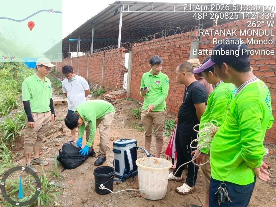 ក្រុមការងារក្រសួងបរិស្ថានបានបន្តចុះពិនិត្យ ជាមួយមន្រ្តីជំនាញនៃមន្ទីរបរិស្ថានខេត្តបាត់ដំបង និងរដ្ឋបាលស្រុករតនមណ្ឌលនៅថ្ងៃទី២១-២២ ខែមេសា ឆ្នាំ២០២៦ និងបានរកឃើញថារោងចក្រផលិតដំណាប់ស្វាយ បៃ ស៊ីង សេង (ខេមបូឌា) អ៊ុនដាសស្ត្រី ឯ.ក ដែលស្ថិតនៅជាប់នឹងដងអូរត្រែង និងស្ថិតនៅចំណុចខ្សែទឹកខាងលើទីតាំង ដែលមានត្រីងាប់ ចម្ងាយប្រមាណ ២គីឡូម៉ែត្រ បានបញ្ចេញសំណល់រាវ មិនបានធ្វើប្រព្រឹត្តកម្មត្រឹមត្រូវដោយបានបង្ហូរតាមប្រព័ន្ធលូចេញពីទីតាំងផលិតកម្ម ចូលទៅក្នុងអូរត្រែងដោយផ្ទាល់។