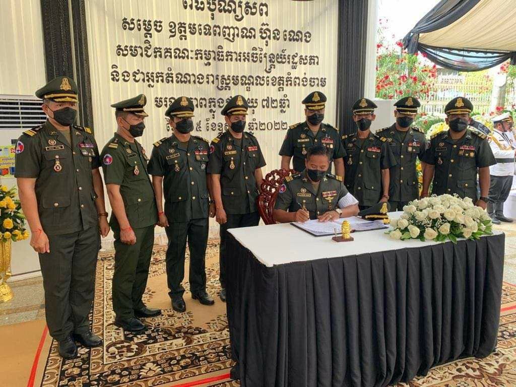 កំពង់ចាម៖ នៅព្រឹកថ្ងៃទី ០៨ខែឧសភា ឆ្នាំ២០២២នេះ លោកវរសេនីយ៍ឯក ថន ដារ៉ា មេបញ្ជាការរងបញ្ជាការដ្ឋានជាតិកម្លាំងពិសេសប្រឆាំងភេរវកម្ម បានដឹកនាំប្រតភូ អញ្ជើញគោរពវិញ្ញាណក្ខន្ធសពសម្តេចឧត្តមទេពញាណ ហ៊ុន ណេង តំណាងរាស្រ្តមណ្ឌលខេត្តកំពង់ចាម និងជាសមាជិកគណៈកម្មាធិការអចិន្រ្តៃយ៍រដ្ឋសភា ដែលកំពុងតម្កល់ធ្វើបុណ្យតាមប្រពៃណីសាសនា នៅគេហដ្ឋានសព នាក្រុងកំពង់ចាម ខេត្តកំពង់ចាម។