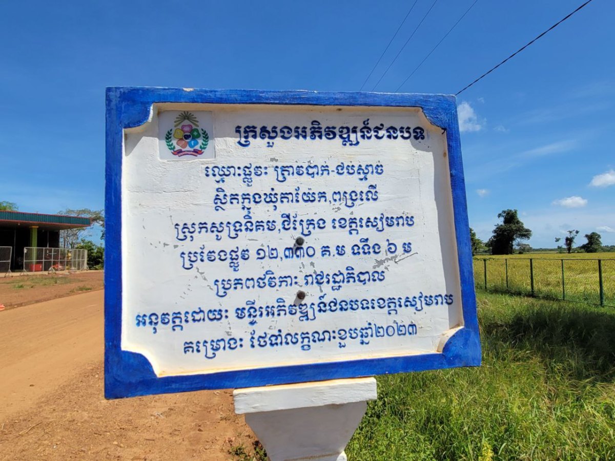 លោក ទូច ម៉ាឡា ប្រធានមន្ទីរអភិវឌ្ឍន៍ជនបទ ខេត្ដសៀមរាប មានប្រសាសន៍ថា ផ្លូវមួយខ្សែនេះ មានប្រវែងជាង១២គីឡូវម៉ែត្រ នៅចំណុចឃុំតាយ៉ែក និងឃុំពង្រលើ ទំហំទទឹងខ្នងលើ៦ម៉ែត្រ ប្រភពថវិការាជរដ្ឋាភិបាលជួលជុល ក្រោមគម្រោងថែទាំខួបក្រាលគ្រួសក្រហម ដោយមន្ទីរអភិវឌ្ឍន៍ជនបទ។លោកបានបន្ដថា ផ្លូវនេះបានជួសជុលឡើងវិញរយៈពេលបីខែ ដោយចាប់ពីខែកក្កដា ដល់ខែតុលាឆ្នាំ២០២៣នេះ ដែលមកដល់ពេលនេះ ជួសជុលរួរាល់១០០ភាគរយហើយ។