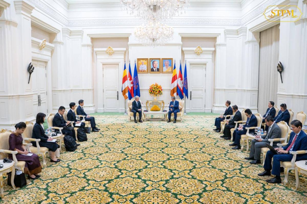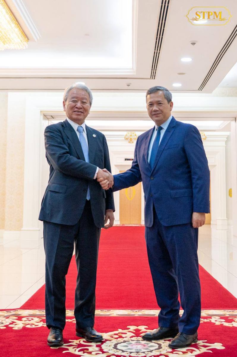 នាព្រឹកថ្ងៃទី១៣ ខែតុលា ឆ្នាំ២០២៥ នៅវិមានសន្តិភាព, សម្តេចមហាបវរធិបតី ហ៊ុន ម៉ាណែត នាយករដ្ឋមន្ត្រីនៃព្រះរាជាណាចក្រកម្ពុជា បានអនុញ្ញាតឱ្យ ឯកឧត្តមបណ្ឌិត Tanaka Akihiko ប្រធានទីភ្នាក់ងារសហប្រតិបត្តិការអន្តរជាតិជប៉ុន (JICA) ចូលជួបសម្តែងការគួរសម និងពិភាក្សាការងារ។