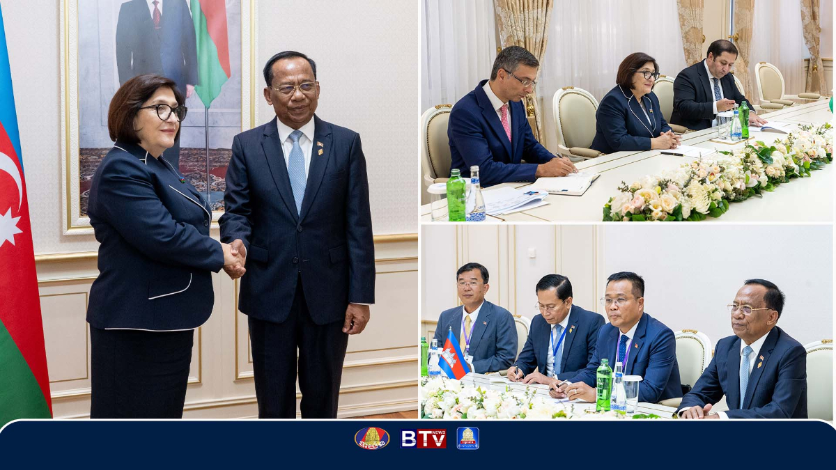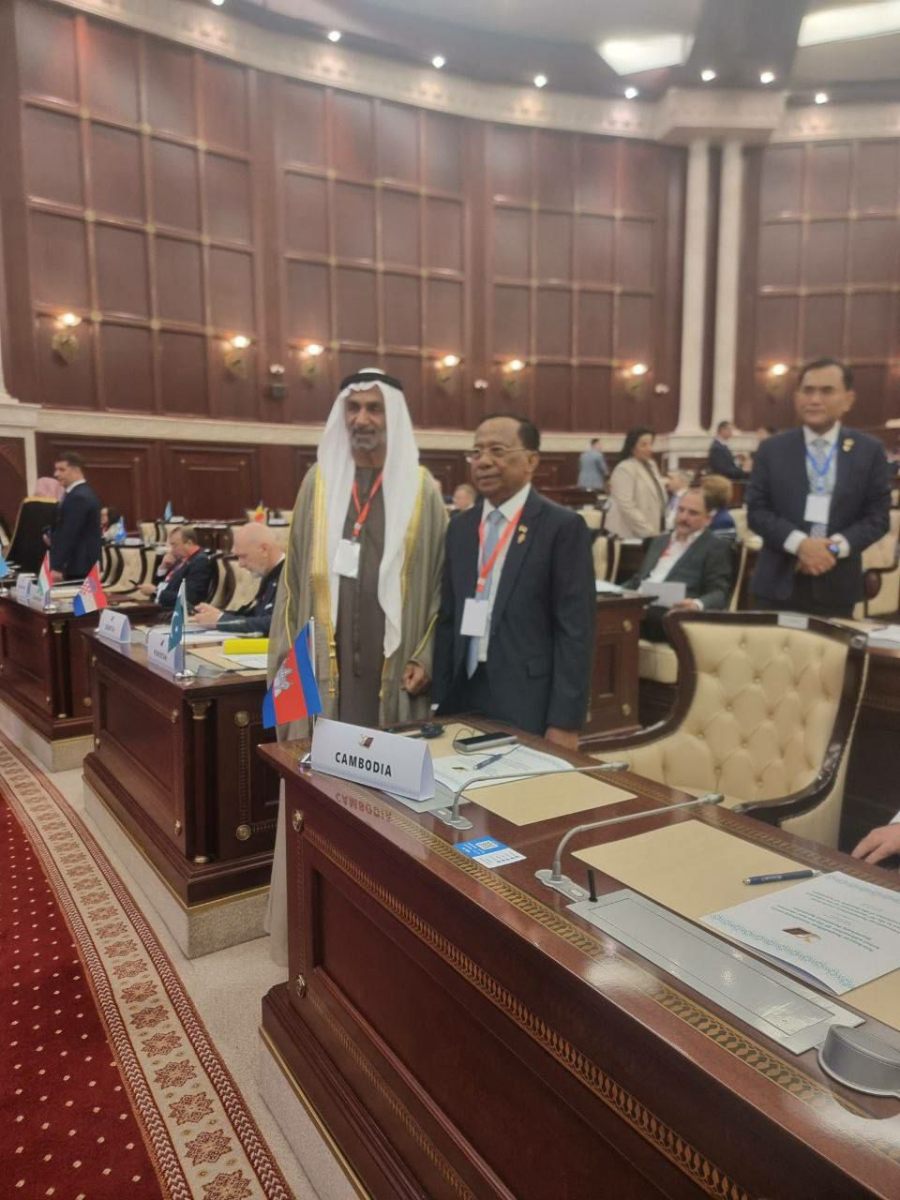 ឆ្លៀតក្នុងឱកាសនៃការចូលរួមសន្និសីទសភាអន្តរជាតិ ដើម្បីរំលឹកខួបលើកទី៣០ នៃរដ្ឋធម្មនុញ្ញសាធា រណរដ្ឋអាស៊ែបៃហ្សង់ នាថ្ងៃទី២៩ ខែតុលា ឆ្នាំ២០២៥ ឯកឧត្តម វង សូត អនុប្រធានទី២រដ្ឋសភា បានជួបសំណេះសំណាល ជាមួយ ឯកឧត្តម Ahmed Aljarwan ប្រធានក្រុមប្រឹក្សាអន្តរជាតិដើម្បីសន្តិភាព និងភាពអត់ឱន។