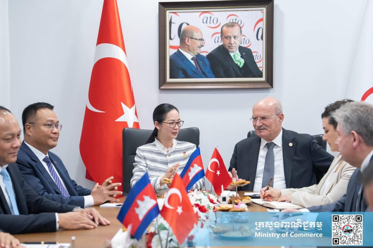 ការប្តេជ្ញានេះ ត្រូវបានធ្វើឡើងក្នុងជំនួបពិភាក្សាការងាររវាងលោកជំទាវ ចម និម្មល រដ្ឋមន្ត្រីក្រសួងពាណិជ្ជកម្ម និងលោក Gürsel BARAN ប្រធានសភាពាណិជ្ជកម្មអង់ការ៉ា និងសហការី កាលពីព្រឹកថ្ងៃទី៣ ខែវិចិ្ឆកា ឆ្នាំ២០២៥ នៅទីក្រុងអង់ការ៉ា ប្រទេសតួកគីយ៉េ។នេះបើតាមបណ្តាញសង្គមរបស់ក្រសួងពាណិជ្ជកម្មបានផ្សាយនៅថ្ងៃទី៤ វិច្ឆិកានេះ។