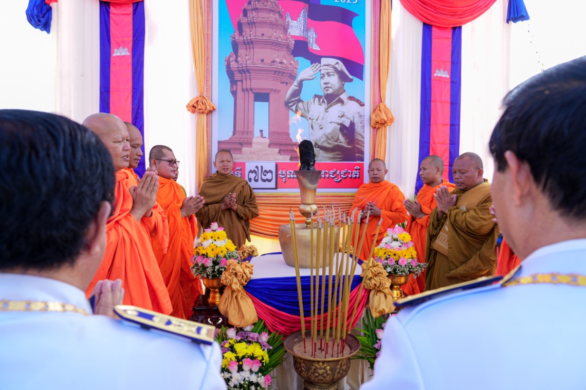 នៅក្នុងពិធីយ៉ាងអធិកអធមនេះ ថ្នាក់ដឹកនាំរដ្ឋបាលខេត្ត ស្រុក ក្រុង និង មន្ទីរ អង្គភាពបានរៀបចំប្រតិភូ អញ្ជើញដាក់ កូរោន ចំនួន ១១ ផែនដើម្បីគោរពវិញ្ញាណក្ខន្ធ ព្រះបរមរតនកោដ្ឋព្រះករុណា ព្រះបាទសម្តេចព្រះនរោត្តម សីហនុ ព្រះមហាវីរក្សត្រ ព្រះវរាជបិតាឯករាជ្យ បូរណភាពដែនដី និងឯកភាពជាតិខ្មែរ និងសម្តែងការគោរពដឹងគុណចំពោះយុទ្ធជន យុទ្ធនារីនិងអ្នកស្នេហាជាតិគ្រប់ជំនាន់ ដែលបានពលីជីវិតក្នុងបុព្វហេតុជាតិមាតុភូមិនិងប្រជាជនក្នុងឱកាសខួបលើកទី៧២នៃទិវាបុណ្យឯករាជ្យ៩វិច្ឆិកា ដោយបាននិមន្តព្រះសង្ឃ អង្គបង្សុកូល អុជ ភ្លើងជ័យ នៅលើស្តូប អនុស្សាវរីយ៍ដែលស្ថិតនៅ កណ្តាលបុរីវប្បធម៌ កោះសំពៅមាសជាបន្តបន្ទាប់ ។
