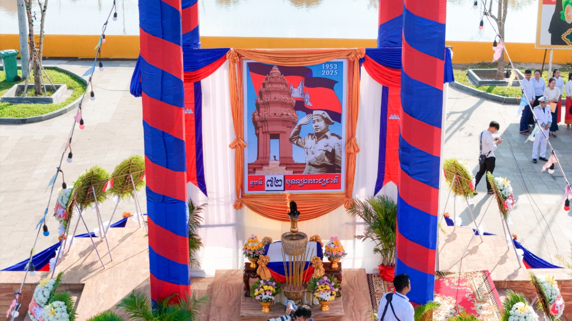 ថ្នាក់ដឹកនាំ មន្ត្រីរាជការ កងកម្លាំងប្រដាប់អាវុធទាំង៣ លោកគ្រូ អ្នកគ្រូសិស្សានុសិស្សប្រមាណ១៥០០អង្គ/នាក់ ដែលបាននិមន្តនិងអញ្ជើញចូលរួមអបអរសាទរទិវាបុណ្យឯករាជ្យជាតិ៩វិច្ឆិកាខួបលើកទី៧២ ថ្ងៃកំណើតកងយោធពលខេមរភូមិន្ទ ត្រូវ បានរដ្ឋបាលខេត្តប្រារព្ធធ្វើ ឡើងនៅលើបុរីវប្បធម៌កោះសំពៅមាស ស្ថិតក្នុងសង្កាត់ផ្ទះព្រៃ ក្រុងពោធិ៍សាត់ នាព្រឹកថ្ងៃអាទិត្យ ៤រោជ ខែកក្តឹក ឆ្នាំម្សាញ់ សប្តស័ក ព.ស២៥៦៩ត្រូវនឹងថ្ងៃទី០៩ខែវិច្ឆិកា ឆ្នាំ២០២៥ ស្ថិតក្រោម អធិបតីភាពឯកឧត្តម ម៉ក់ រ៉ា ប្រធានក្រុមប្រឹក្សាខេត្ត និងឯកឧត្តម ខូយ រីដា អភិបាលនៃគណៈអភិបាលខេត្តពោធិ៍សាត់។