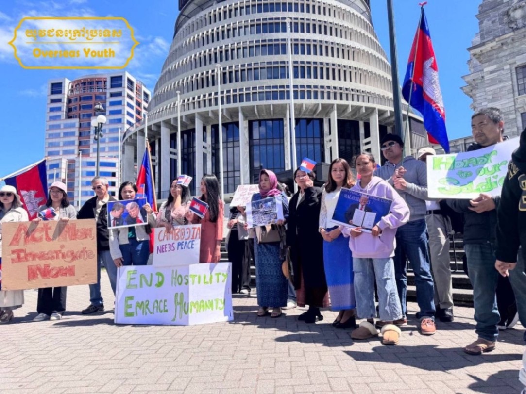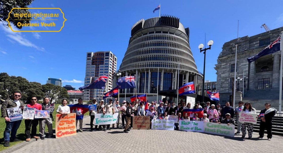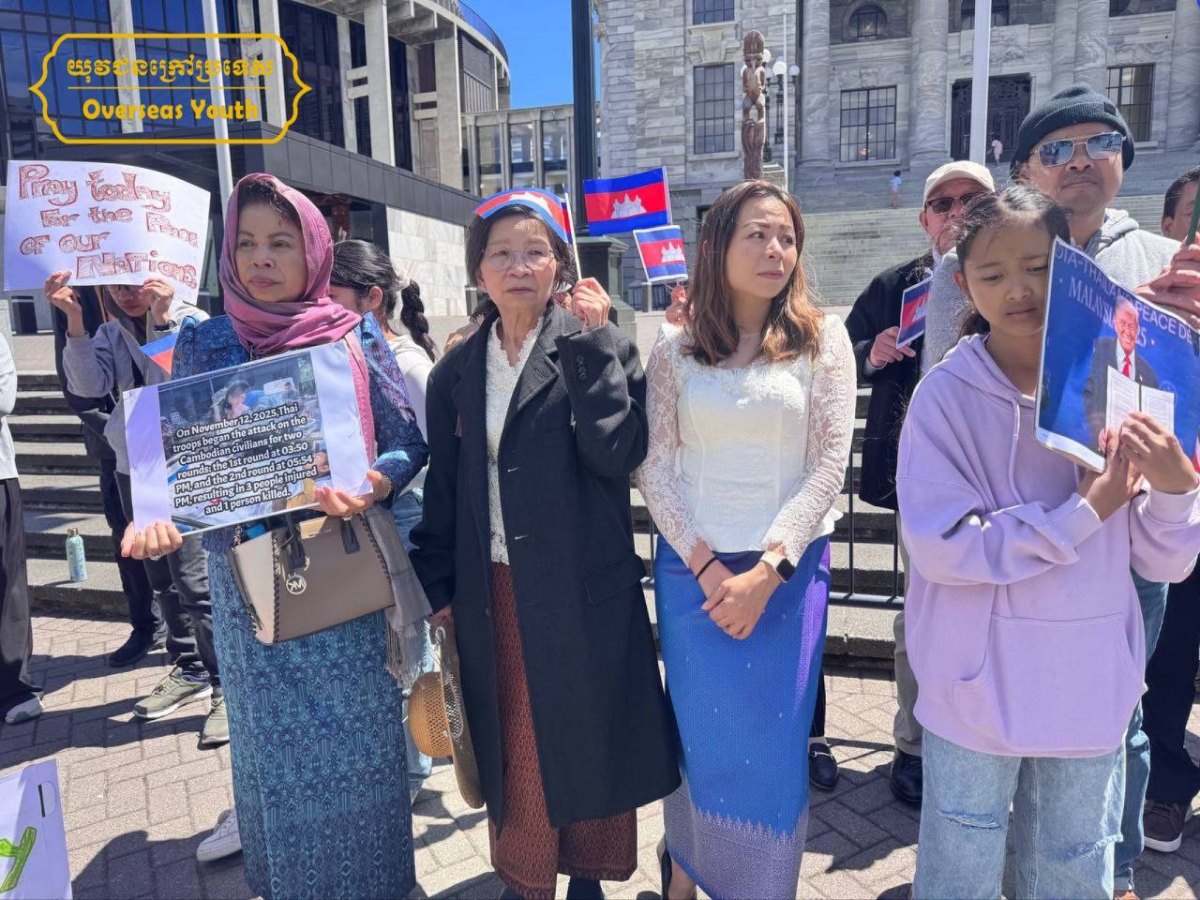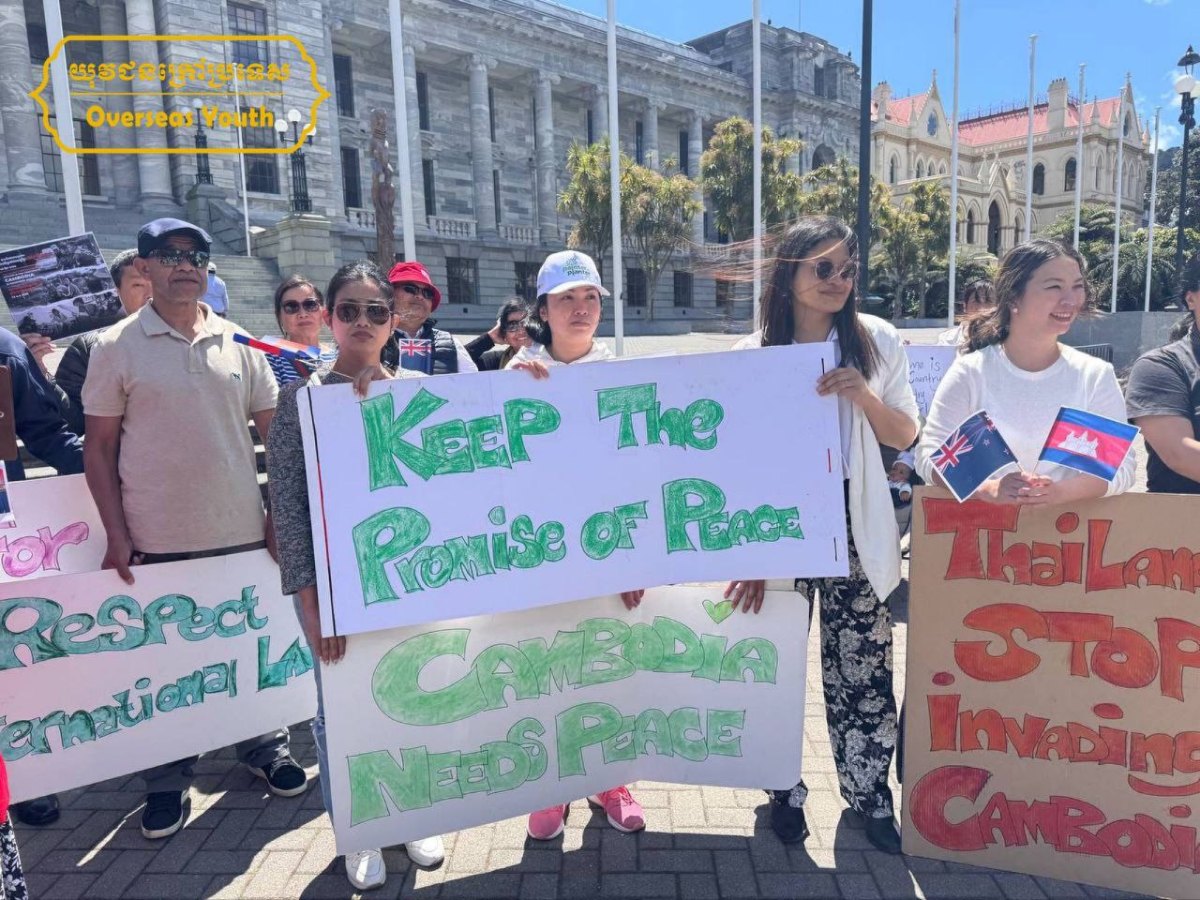 រសៀលថ្ងៃអាទិត្យ ទី១៦ ខែវិច្ឆិកា ឆ្នាំ២០២៥ ប្រជាពលរដ្ឋខ្មែររស់នៅក្នុងរដ្ឋធានីវ៉ែល្លីងតុន ទីក្រុងក្រៃឈើច ទីក្រុងផាមើស្តុនណតស៍ ប្រទេសនូវ៉ែលហ្សេឡង់ ប្រមាណជាង ២០០នាក់ បានជួបជុំគ្នានៅមុខរដ្ឋសភារដ្ឋធានីវ៉ែល្លីងតុន ប្រទេសនូវ៉ែលហ្សេឡង់ ដើម្បីប្រកាសថ្កោលទោសយ៉ាងដាច់អហង្ការ ចំពោះទង្វើបាញ់ប្រហារបង្កដោយភាគីថៃ មកលើពលរដ្ឋខ្មែរ នៅភូមិព្រៃចាន់ ឃុំអូរបីជាន់ ស្រុកអូរជ្រៅ ខេត្តបន្ទាយមានជ័យ បណ្ដាលឱ្យពលរដ្ឋខ្មែរម្នាក់ស្លាប់បាត់បង់ជីវិត និង៣នាក់រងរបួស។