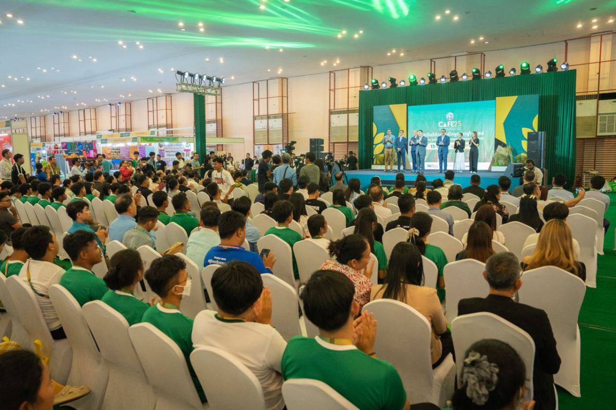 ទន្ទឹមនេះ ឯកឧត្តមរដ្ឋមន្រ្តី បានថ្លែងអំណរគុណ និងកោតសរសើរដល់ថ្នាក់ដឹកនាំក្រសួង ស្ថាប័ន គ្រប់អង្គភាពពាក់ព័ន្ធទាំងអស់ ដៃគូអភិវឌ្ឍន៍នានា ជាពិសេសអង្គការស្បៀង និងកសិកម្មនៃសហប្រជាជាតិប្រចាំកម្ពុជា (FAO) ដែលជាដៃគូជិតស្និត អង្គការ វិស័យឯកជន និងនិស្សិតស័្មគ្រចិត្តទាំងអស់ ដែលបានខិតខំលះបង់ទាំងកម្លាំងកាយកម្លាំងចិត្តដើម្បីដំណើរការកម្មវិធី CAFE25 បានបញ្ចប់ដោយជោគជ័យ និងមានការគាំទ្រពេញទំហឹងពីសំណាក់បងប្អូនទាំងអស់ សំដៅលើកកម្ពស់ពាណិជ្ជកម្ម ទាក់ទាញវិនិយោគិនក្នុងស្រុកនិងក្រៅប្រទេស និងជំរុញការកែច្នៃក្នុងវិស័យកសិ-ស្បៀងអាហារកម្ពុជា ទៅកាន់ទីផ្សារអន្តរជាតិ៕ អត្ថបទ៖ ឈិត បូរ៉ាវី