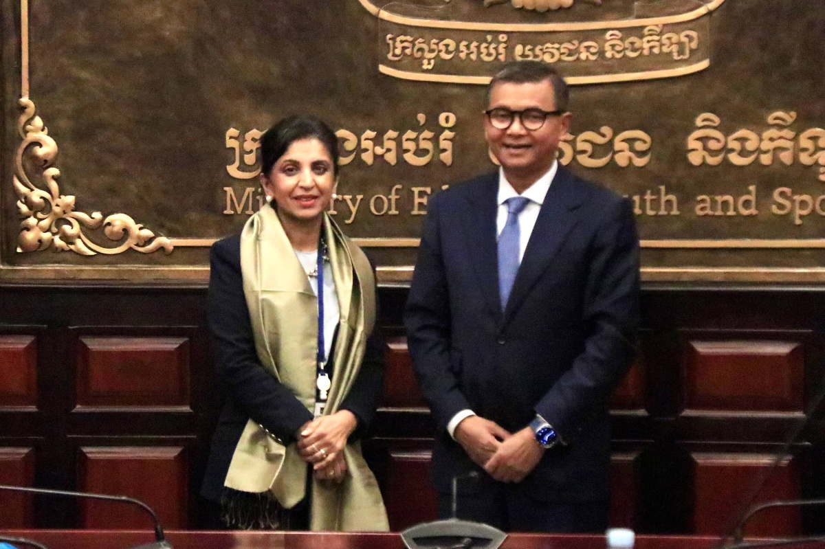លោកជំទាវ Yasmin Siddiqi នាយិកាប្រចាំប្រទេសថ្មី នៃធនាគារអភិវឌ្ឍន៍អាស៊ី (ADB) ប្រចាំកម្ពុជា បានបង្ហាញចំណាប់អារម្មណ៍ក្នុងការឈ្វេងយល់បន្ថែមអំពីបេសកកម្មអាទិភាពថ្មីៗ របស់ក្រសួងអប់រំ យុវជន និងកីឡា សម្រាប់ឆ្នាំ២០២៦ ខាងមុខនេះ។