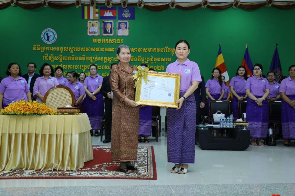 សម្តេចកិត្តិសង្គហបណ្ឌិត ម៉ែន សំអន ប្រធានគណៈកម្មាធិការកណ្តាលសមាគមនារីកម្ពុជា ដើម្បីសន្តិភាព និងអភិវឌ្ឍន៍ បានប្រកាសទទួលស្គាល់សមាសភាពគណៈកម្មការសាខាសមាគមនារីកម្ពុជា ដើម្បីសន្តិភាព និងអភិវឌ្ឍន៍ ខេត្តស្វាយរៀង និងកិច្ចប្រជុំបូក សរុបលទ្ធផលការងាររបស់សាខា សមាគមប្រចាំ ឆ្នាំ២០២៥និងលើក ទិសដៅអនុវត្តឆ្នាំ២០២៦។