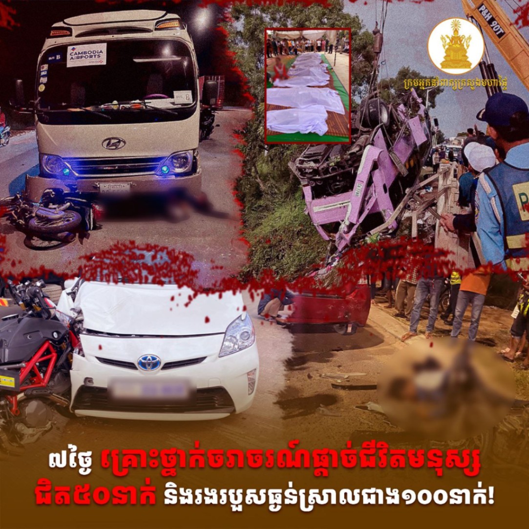 រយៈពេលត្រឹមតែ៧ថ្ងៃ គ្រោះថ្នាក់ចរាចរណ៍ផ្តាច់ជីវិតមនុស្សជិត ៥០នាក់ និងរងរបួសធ្ងន់ស្រាលជាង ១០០នាក់