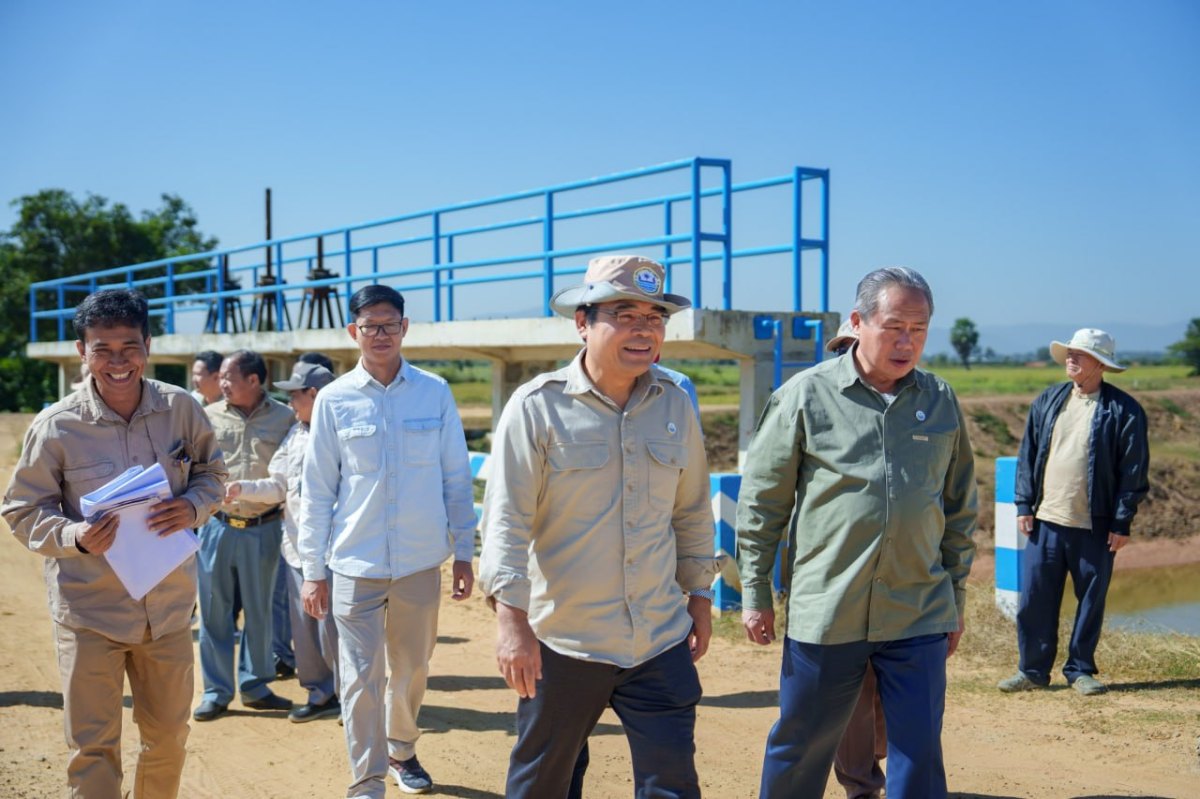 នាព្រឹកថ្ងៃអាទិត្យ ទី៣០ ខែវិច្ឆិកា ឆ្នាំ២០២៥នេះ ឯកឧត្តម ថោ ជេដ្ឋា រដ្ឋមន្ត្រីក្រសួងធនធានទឹក និងឧតុនិយម បានអញ្ជើញដឹកនាំមន្ត្រីបច្ចេកទេសក្រសួង និងមន្ទីរធនធានទឹក និងឧតុនិយមខេត្តតាកែវ និងខេត្តកណ្តាល ចុះពិនិត្យជាក់ស្តែងវឌ្ឍនភាពការងារប្រឡាយមេរលាំងជ្រៃខាងត្បូង(រលាំងជ្រៃ-ស្លាគូ) ស្ថិតក្នុងឃុំកាហែង ស្រុកសំរោងទង ខេត្តកំពង់ស្ពឺ ដែលសម្រេចបានប្រមាណ ៩៩%។