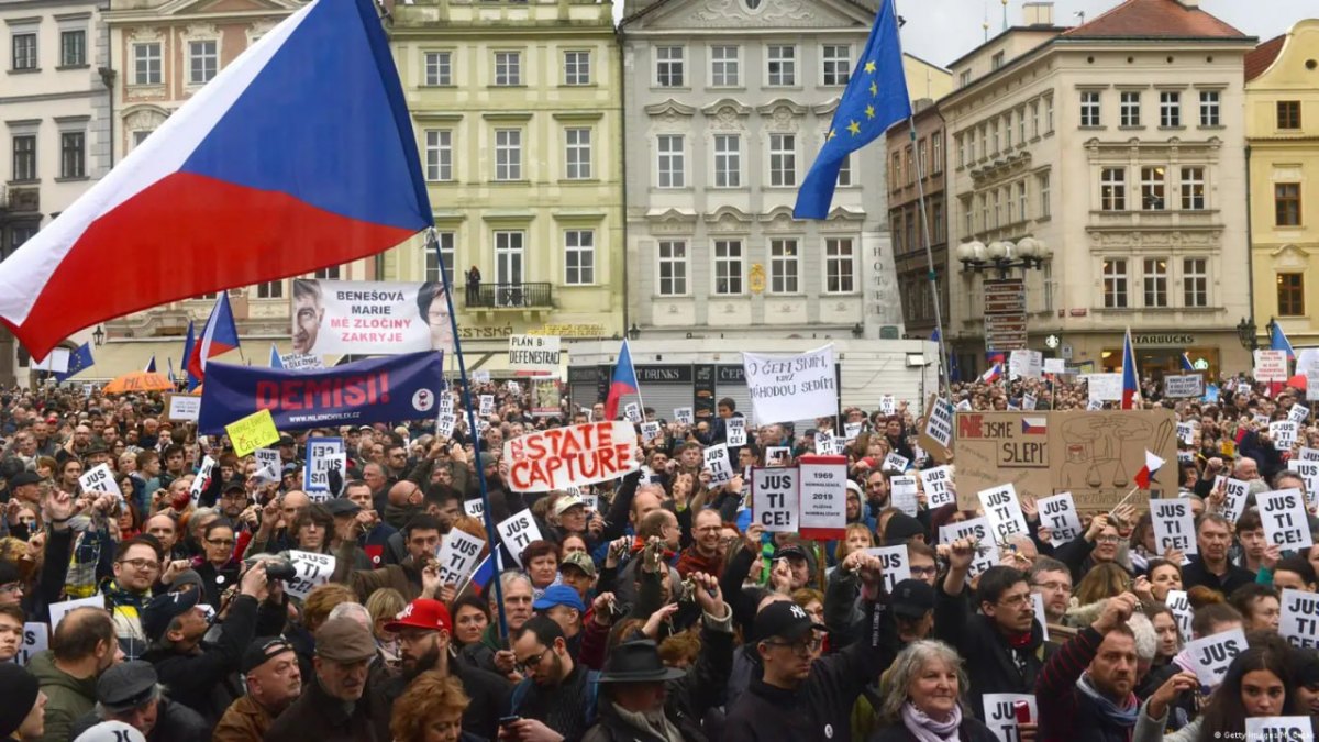 និស្សិតប្រទេសឆែក បានតវ៉ានៅទីក្រុងប្រាក កាលពីថ្ងៃអង្គារ ទី៩ ខែធ្នូ ខណៈប្រធានាធិបតី លោក Petr Pavel បានតែងតាំងមេដឹកនាំដែលជាមហាសេដ្ឋីមកពីគណបក្សANOប្រជានិយម លោក Andrej Babis ជានាយករដ្ឋមន្ត្រី។