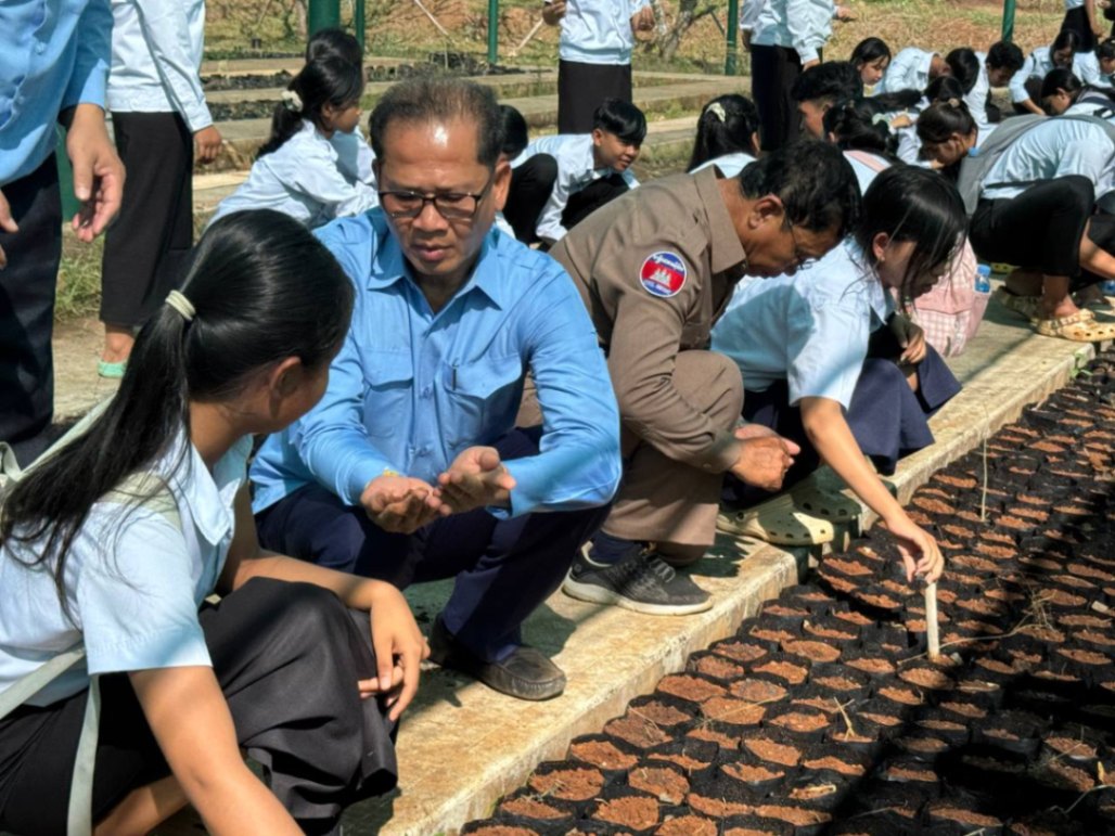សូមបញ្ជាក់ថា ថ្នាក់ដឹកនាំនិងមន្រ្តីរាជការក្រសួងបរិស្ថាន សហការជាមួយរដ្ឋបាលស្រុកអូររាំងឪ អាជ្ញាធរមូលដ្ឋាន បានរៀបចំកម្មវិធីចែករំលែកចំណេះដឹង លើការដាំដុះកូនឈើ និងដាំបន្លែនៅថ្នាលបណ្តុះកូនឈើថ្នាក់តំបន់ ខេត្តត្បូងឃ្មុំ នៅក្នុងឃុំព្រះធាតុ ស្រុកអូររាំងឪ ខេត្តត្បូងឃ្មុំ នាថ្ងៃទី២៥ ខែធ្នូ ឆ្នាំ២០២៥ ជាមួយលោកគ្រូអ្នកគ្រូ សិស្សានុសិស្ស និងប្រជាពលរដ្ឋក្នុងស្រុកអូររាំងឪ ជាច្រើននាក់។ អ្នកចូលរួមបានប្ដេជ្ញា ចូលរួមដាំដុះ និងថែទាំពន្លកបៃតង (កូនឈើនិងបន្លែបង្ការ) ឲ្យបានរីលូតលាស់ល្អ ឆ្លើយតមតម្រូវការក្នុងគ្រួសារ និងសង្គមជាតិ ជាពិសេសក្នុងស្មារតីខ្មែរជួយខ្មែរ ខ្មែររួមសាមគ្គីគ្នា ខ្មែរស្រឡាញ់សន្តិភាព។