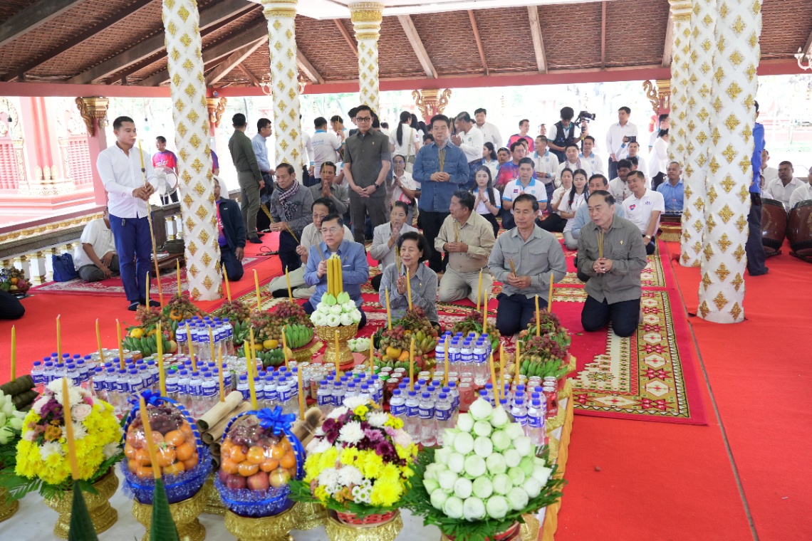 បន្ទាប់ពីធ្វើពិធីប្រគល់ទទួលរួចមក ឯកឧត្តម លោកជំទាវ សមាជិករដ្ឋសភា និងថ្នាក់ដឹកនាំខេត្ត បានអញ្ជើញចូលអុជធូកបួងសួង នៅអាសនៈព្រះអង្គចៅសែន លើបុរីវប្បធម៌កោះសំពៅមាស និង នៅបូជនីយដ្ឋានប្រវត្តិសាស្ត្រលោកឧកញ៉ា ឃ្លាំងមឿង និងលោកជំទាវខាន់ ខៀវ ដើម្បីសុំសេចក្តីសុខជូនដល់វិរកងទ័ពជួរមុខកំពុងប្រយុទ្ធការពារទឹកដីពីសត្រូវឈ្លានពាន និងសូមឲ្យឆាប់ទទួលបានសន្តិភាពដើម្បីប្រជាពលរដ្ឋជនភៀសសឹកបានត្រឡប់ទៅផ្ទះសម្បែងឡើងវិញ ៕