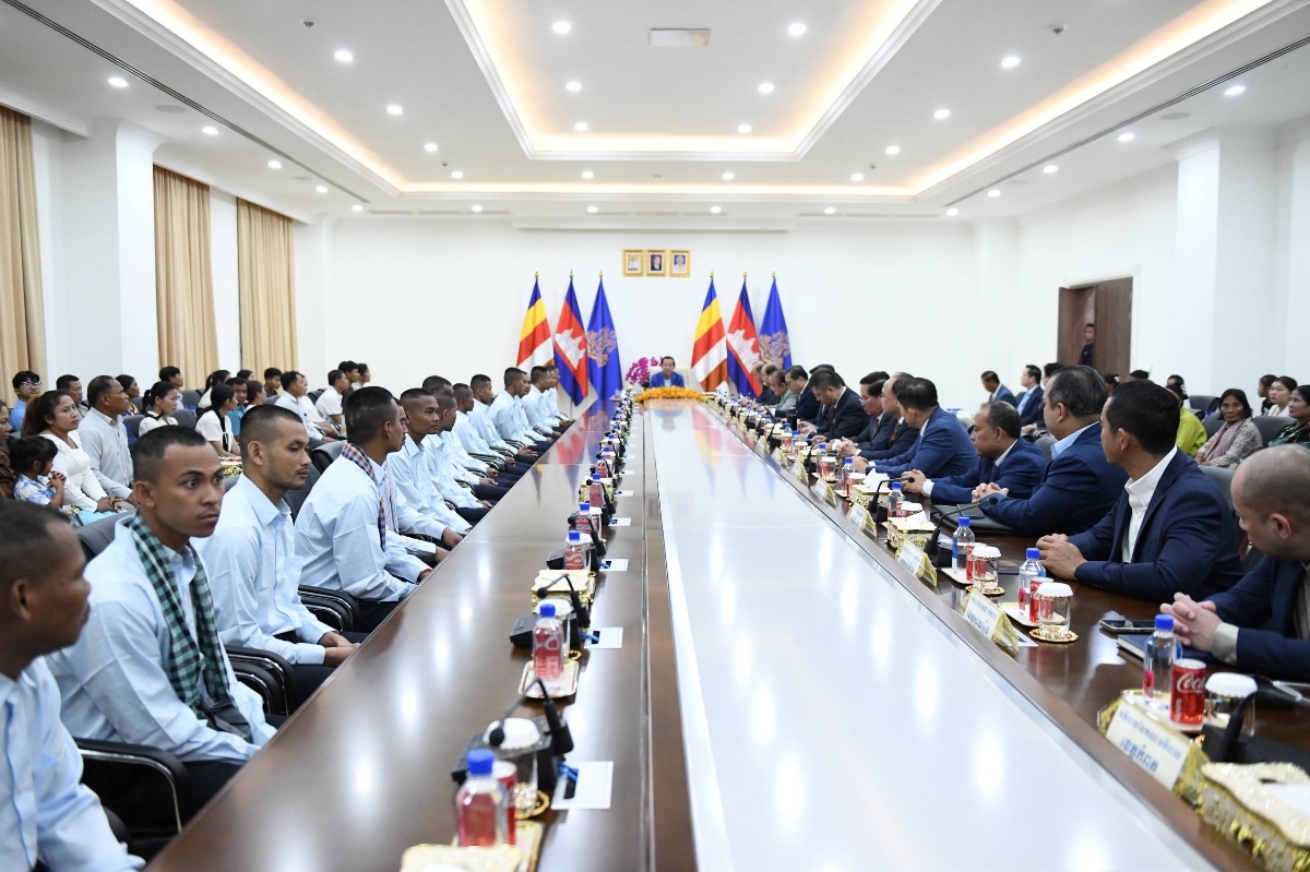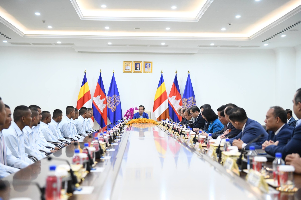 សម្តេចអគ្គមហាសេនាបតីតេជោ ហ៊ុន សែន ប្រធានព្រឹទ្ធសភា នៃព្រះរាជាណាចក្រកម្ពុជា និងជាប្រធានគណបក្សប្រជាជនកម្ពុជា អញ្ជើញជួបសំណេះសំណាលជាមួយវីរយុទ្ធជនកម្ពុជាទាំង១៨រូប ដែលបានធ្វើមាតុភូមិនិវត្តន៍មកមាតុប្រទេសវិញដោយសុខសុវត្ថិភាព នៅវិមាន៧មករា រាជធានីភ្នំពេញ នាព្រឹកថ្ងៃទី០១ ខែមករា ឆ្នាំ២០២៦។