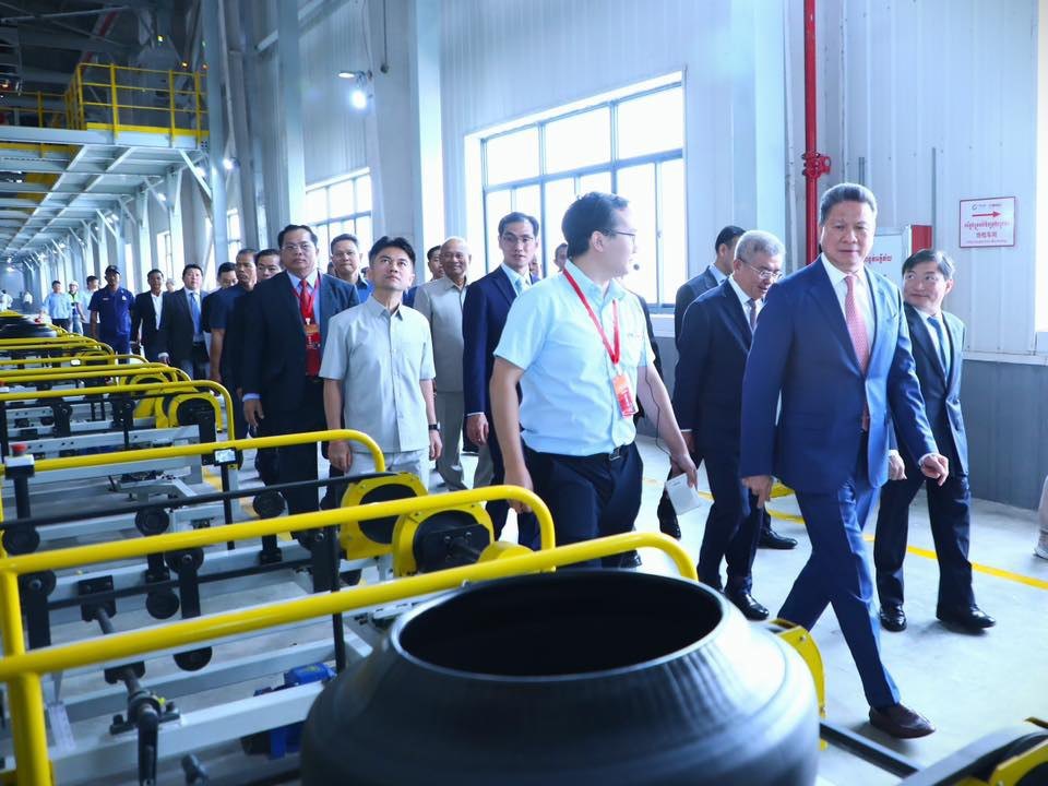 ស្វាយរៀង៖ នៅព្រឹកថ្ងៃទី១២ ខែមករា ឆ្នាំ២០២៦ ឯកឧត្តម ស៊ុន ចាន់ថុល ឧបនាយករដ្ឋមន្ត្រី អនុប្រធានទី១ ក្រុមប្រឹក្សាអភិវឌ្ឍន៍កម្ពុជា តំណាងដ៏ខ្ពង់ខ្ពស់ សម្តេចមហាបវរធិបតី ហ៊ុន ម៉ាណែត នាយករដ្ឋមន្រ្តី នៃព្រះរាជាណាចក្រកម្ពុជា បានអញ្ជើញជាអធិបតី ក្នុងពិធីសម្ពោធដាក់ឱ្យដំណើរការជាផ្លូវការ ដំណាក់កាលទី១ នៃរោងចក្រផលិតសម្បកកង់រថយន្ត វ៉ាន់លី ថាយអឺ (ខេមបូឌា) ឯ.ក. ដោយមានការអញ្ជើញចូលរួមពី ឯកឧត្តមរដ្ឋមន្ត្រីក្រសួងការងារ និងបណ្តុះបណ្តាលវីជ្ជាជីវៈ, ឯកឧត្តមអភិបាលរងនៃគណៈអភិបាលខេត្តស្វាយរៀង, លោក JING GUANGJUN ប្រធានក្រុមប្រឹក្សាភិបាល ក្រុមហ៊ុន Guangzhou Industrial Investment Holding Group, ព្រមទាំង ឯកឧត្តម លោកជំទាវ លោក លោកស្រី និងភ្ញៀវកិត្តិយសជាតិ អន្តរជាតិជាច្រើនរូប។