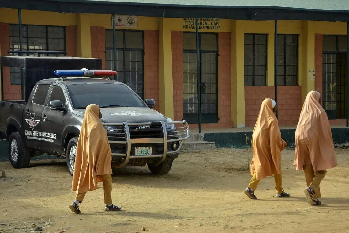 នៅសាលាមធ្យមសិក្សារបស់រដ្ឋាភិបាលក្នុងទីក្រុង Kurmin Mashi រដ្ឋ Kaduna សិស្សដែលស្លៀកសម្លៀកបំពាក់មានរុំមុខបានចូលតាមច្រកទ្វារ ខណៈគ្រូបង្រៀនបានតាមដានមើលការទៅដល់របស់ពួកគេ។