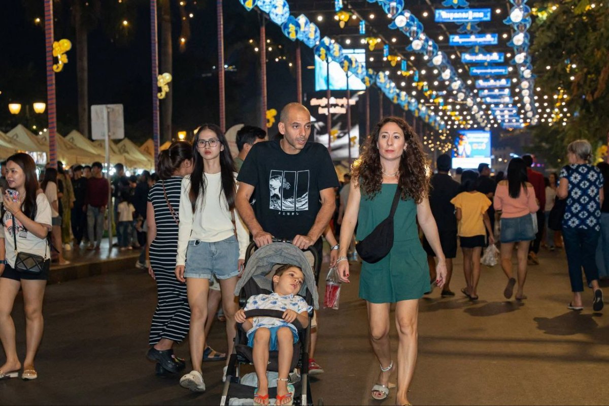 នាយប់ថ្ងៃអាទិត្យទី២៥ ខែមករា ឆ្នាំ២០២៥នេះ មានបងប្អូនប្រជាពលរដ្ឋ ភ្ញៀវជាតិ និងអន្តរជាតិកាន់តែច្រើនកុះករមកដើរលេងកំសាន្ត រួមទាំងចូលទស្សនាផ្ទាំងពិព័រណ៍បង្ហាញសមិទ្ធផល និងការអភិវឌ្ឍនានាក្នុងរាជធានីភ្នំពេញ ដែលបានដាក់តាំងបង្ហាញនៅផ្លូវថ្មើរជើងចតុមុខ (Chaktomuk Walk Street)។