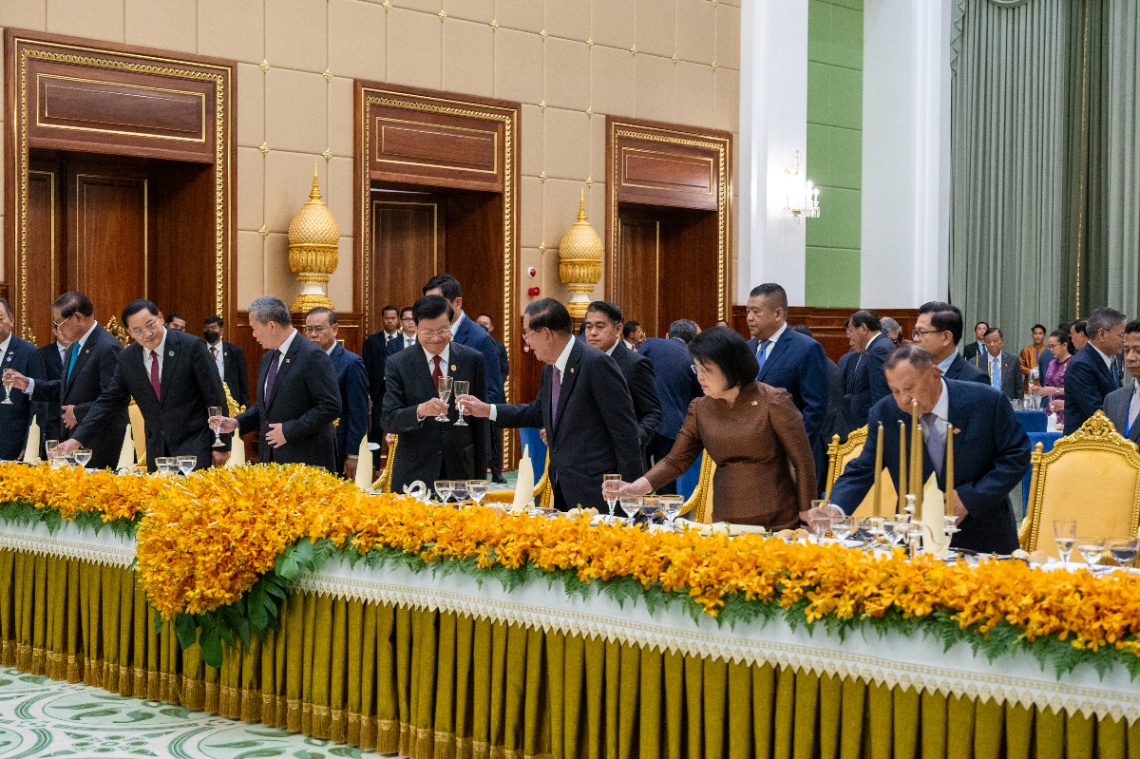 បន្ទាប់ពីបញ្ចប់សន្ទរកថា សម្តេចអគ្គមហាសេនាបតីតេជោ ហ៊ុន សែន ឯកឧត្តមបណ្ឌិត ថងលុន ស៊ីសូលីត (Thongloun Sisoulith) និងគណៈប្រតិភូជាន់ខ្ពស់កម្ពុជា-ឡាវ អញ្ជើញទទួលទានភោជនាហារ អមដោយទស្សនីយភាពសិល្បៈក្រោមបរិយាកាសដ៏រីករាយ និងស្និទ្ធស្នាល។