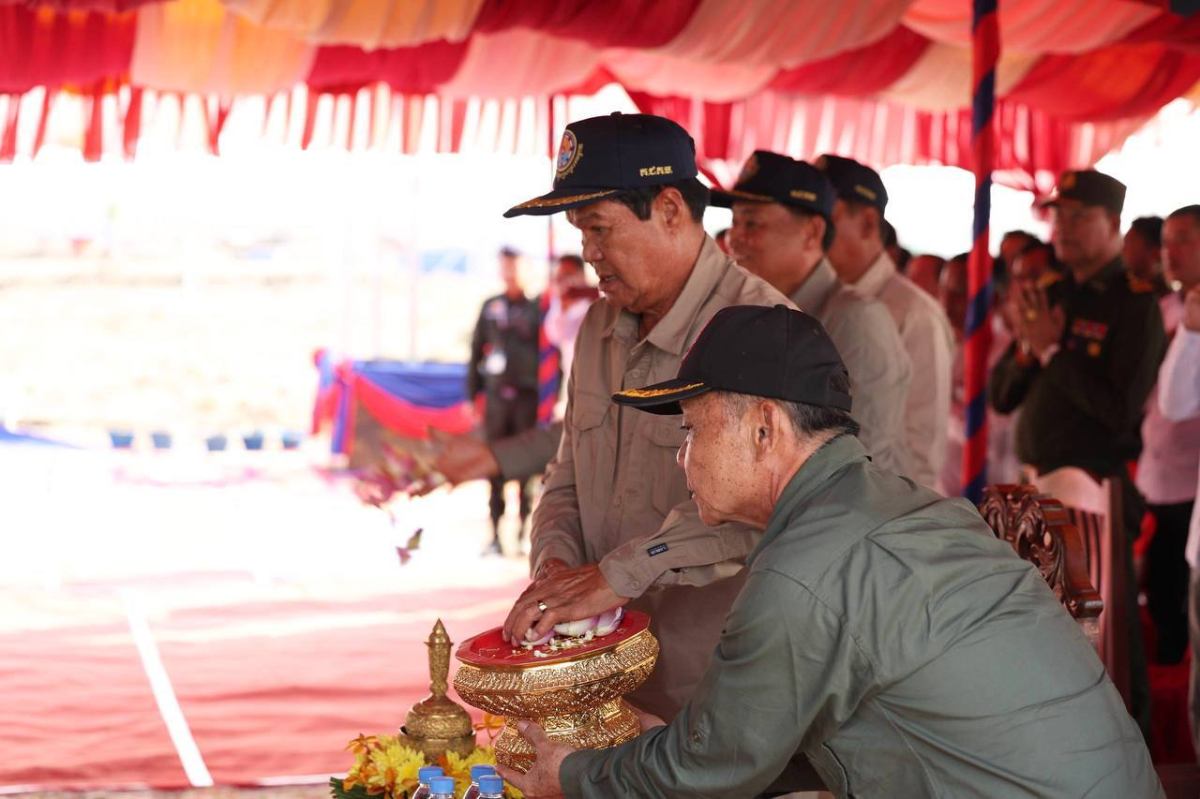 អនុប្រធានទី១ គណៈកម្មាធិការជាតិគ្រប់គ្រងគ្រោះមហន្តរាយ អញ្ជើញ​បញ្ចុះ​បឋម​សិលា​សាង​សង់​ជម្រក​បណ្តោះអាសន្នជូនជនភៀសសឹក នៅខេត្តឧត្តរមានជ័យ