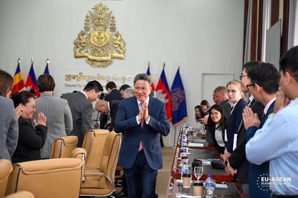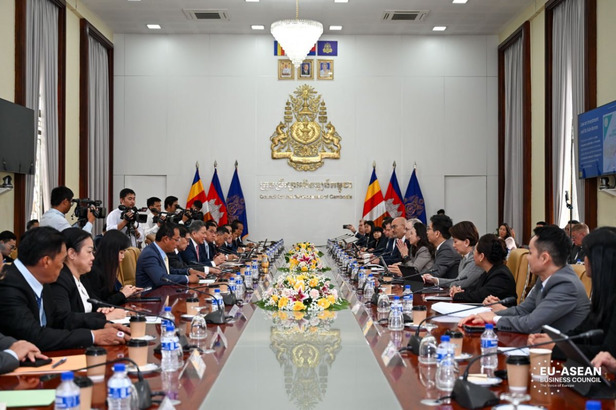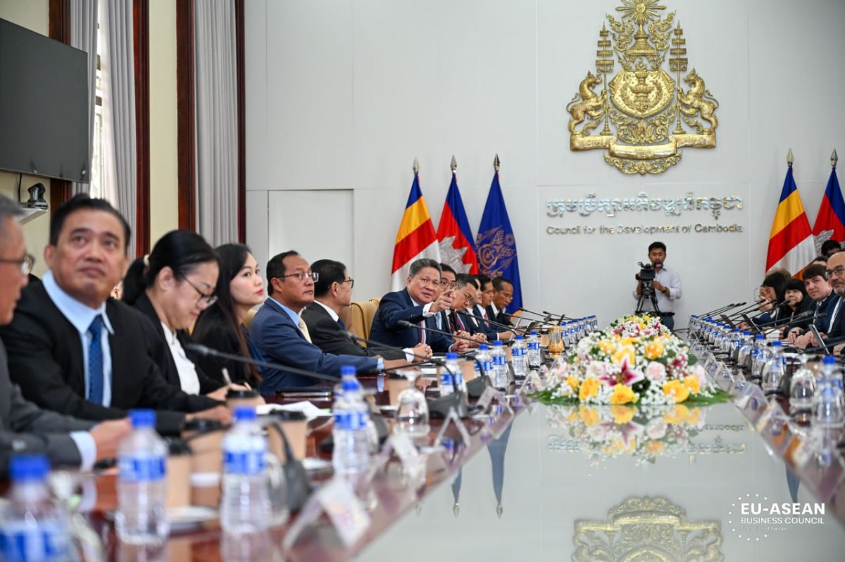 ក្រុមប្រឹក្សាអភិវឌ្ឍន៍កម្ពុជា (CDC) និងគណៈប្រតិភូក្រុមប្រឹក្សាធុរកិច្ចអាស៊ាន-អឺរ៉ុប ( EU-ASEAN Business Council-EU-ABC) បានជួបពិភាក្សាគ្នាផ្តោតលើកិច្ចសហប្រតិបត្តិការសេដ្ឋកិច្ចរវាងកម្ពុជា និងសហភាពអឺរ៉ុប ការប្រកួតប្រជែងពាណិជ្ជកម្ម ឱកាសវិនិយោគ នៅថ្ងៃទី៥ ខែមីនាឆ្នាំ២០២៦នេះ នៅរាជធានីភ្នំពេញ។ ក្នុងជំនួបនេះក្រុមប្រឹក្សាធុរកិច្ចអាស៊ាន-អឺរ៉ុប បង្ហាញចំណាប់អារម្មណ៍ចង់បោះទុនវិនិយោគនៅកម្ពុជាបន្ថែមទៀត។