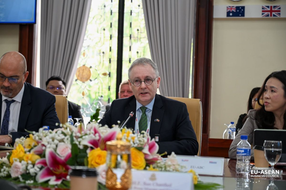 លោក Noel Clehane អនុប្រធាន EU-ABC ដែលដឹកនាំគណៈប្រតិភូ បានលើកឡើងក្នុងកិច្ចប្រជុំនេះថា អាជីវកម្មអឺរ៉ុបជឿជាក់រួចហើយលើភាពទាក់ទាញរបស់ប្រទេសកម្ពុជាសម្រាប់ពាណិជ្ជកម្ម និងវិនិយោគ។ លោក Clehane មានការសាទរយ៉ាងខ្លាំងពីមន្ត្រីរដ្ឋាភិបាលក្នុងការពង្រឹងកិច្ចសហប្រតិបត្តិការជាមួយវិស័យឯកជនអឺរ៉ុប ហើយយើងក៏ចង់វិនិយោគលើអនាគតរបស់ប្រទេសកម្ពុជាផងដែរ។