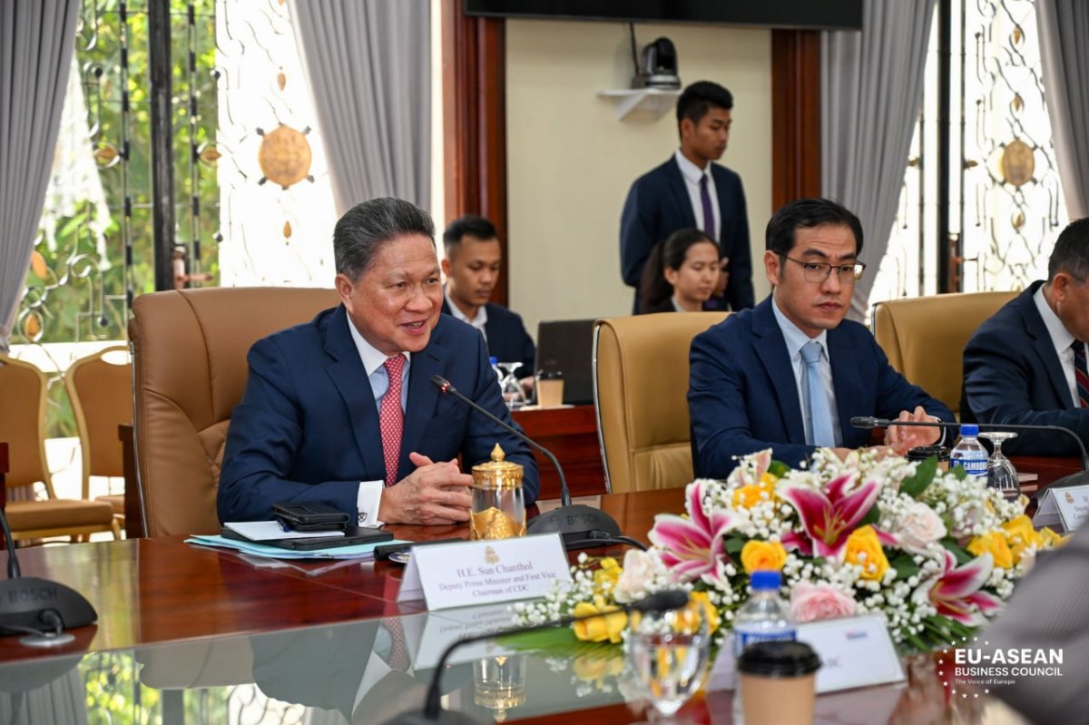 ឯកឧត្តម ស៊ុន ចាន់ថុល ឧបនាយករដ្ឋមន្ត្រី និងជាអនុប្រធានទី១ នៃក្រុមប្រឹក្សាអភិវឌ្ឍន៍កម្ពុជា (CDC) បានដឹកនាំកិច្ចប្រជុំជួបពិភាក្សាជាមួយ គណៈប្រតិភូក្រុមប្រឹក្សាធុរកិច្ចអាស៊ាន-អឺរ៉ុប (EU-ABC) ផ្តោតលើកិច្ចសហប្រតិបត្តិការសេដ្ឋកិច្ចរវាងកម្ពុជា និងសហភាពអឺរ៉ុប ការប្រកួតប្រជែងពាណិជ្ជកម្ម ឱកាសវិនិយោគ និងប្រធានបទជាក់លាក់ផ្សេងៗទៀតតាមវិស័យ។